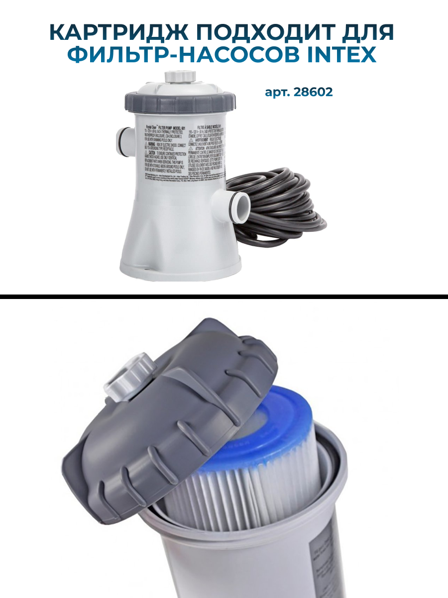 Сменный фильтр-картридж (29007) для фильтрующего насоса Интекс Filter Pump (предназначен для очистки воды в надувных и каркасных бассейнах), без труда и быстро меняется. Простая конструкция, легко чистится.