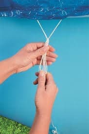 В комплект входят шнуры для крепления. Накройте бассейн тентом и закрепите, затянув нижний край.