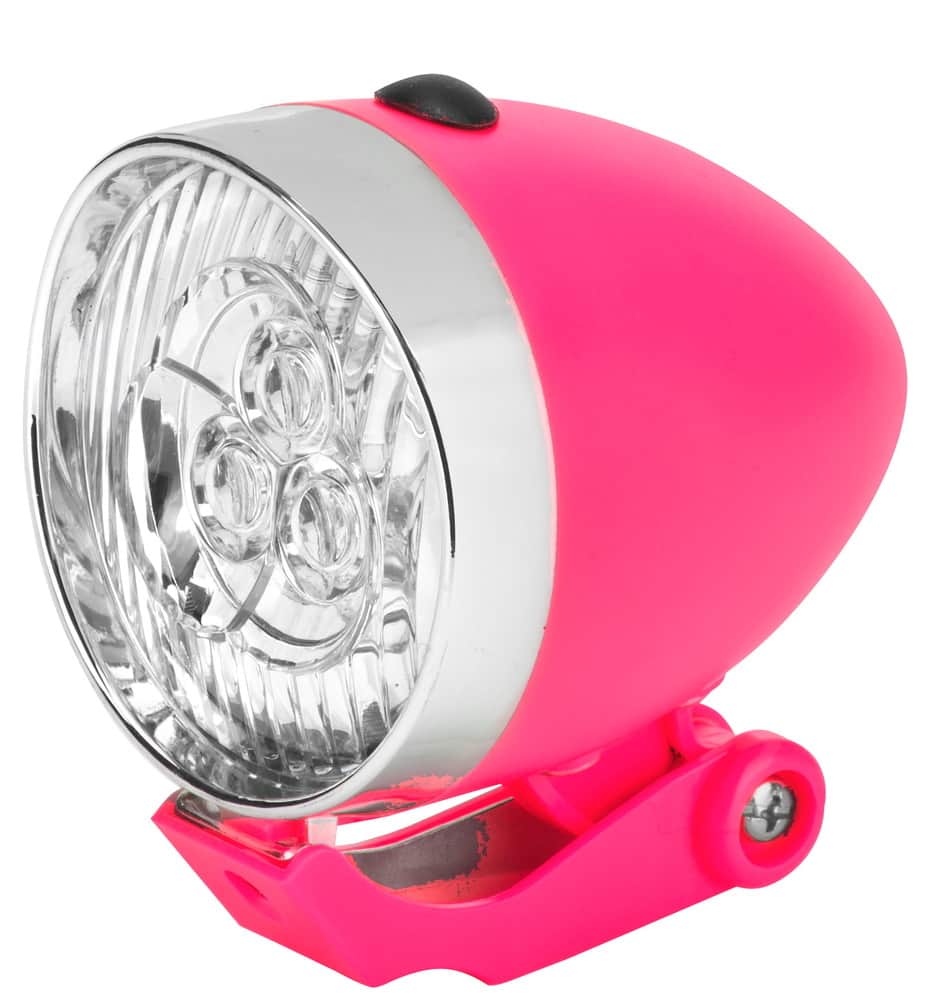 Фонарь JY-592 передний на вилку, 3 суперярких светодиода, 1 режим работы, цвет серебристо-розовый
