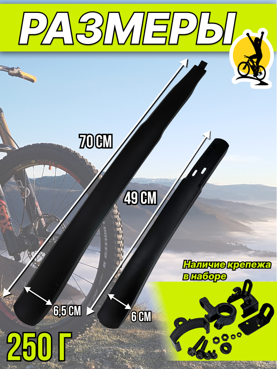 Велосипедные крылья выполнены в современном дизайне из качественных материалов. Универсальные и надежные крылья являются отличным выбором для защиты от воды и грязи в условиях непогоды.