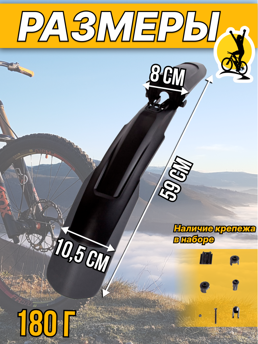 Крыло переднее для велосипеда, для колес диаметра 26-27,5", длина - 590 мм, широкое, прорезиненное.