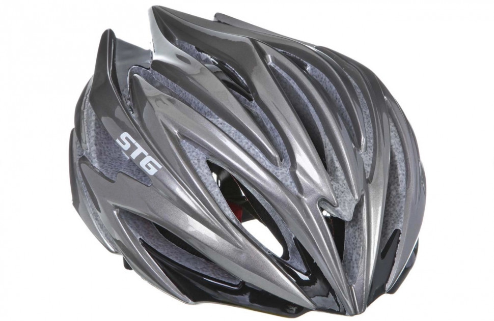 Надежный велосипедный шлем STG с системой фиксации, обеспечивающей комфортную посадку и подгонку по размеру головы. Встроенный задний фонарь сделает вас заметным на дороге в темное время суток.