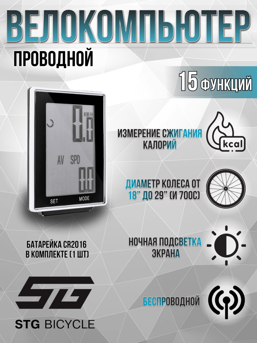 Велокомпьютер проводной STG JY-M19-CL 15 функций Х81880