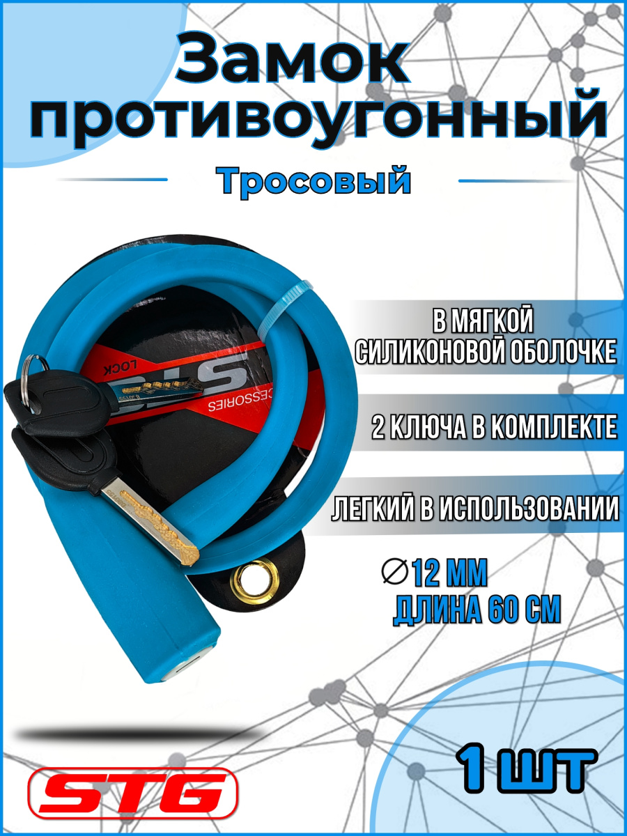 Велосипедный замок - это отличная вещь для сохранности вашего велосипеда. Блокируется при помощи ключа (2 шт, входят в комплект).Длина 60см. Диаметр 12мм. Вес 270г.