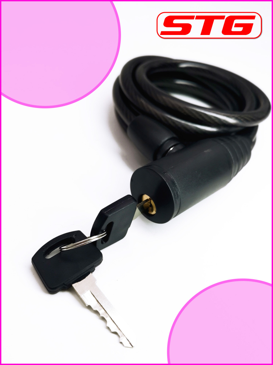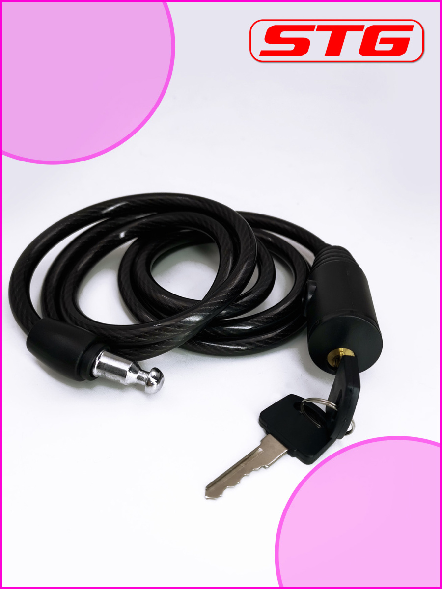Замок-трос STG , 8x1500мм, черный, Х10428
