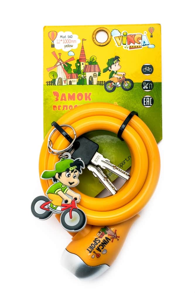 Замок Vinca Sport детский c брелком 12*1000мм, желтый тросик