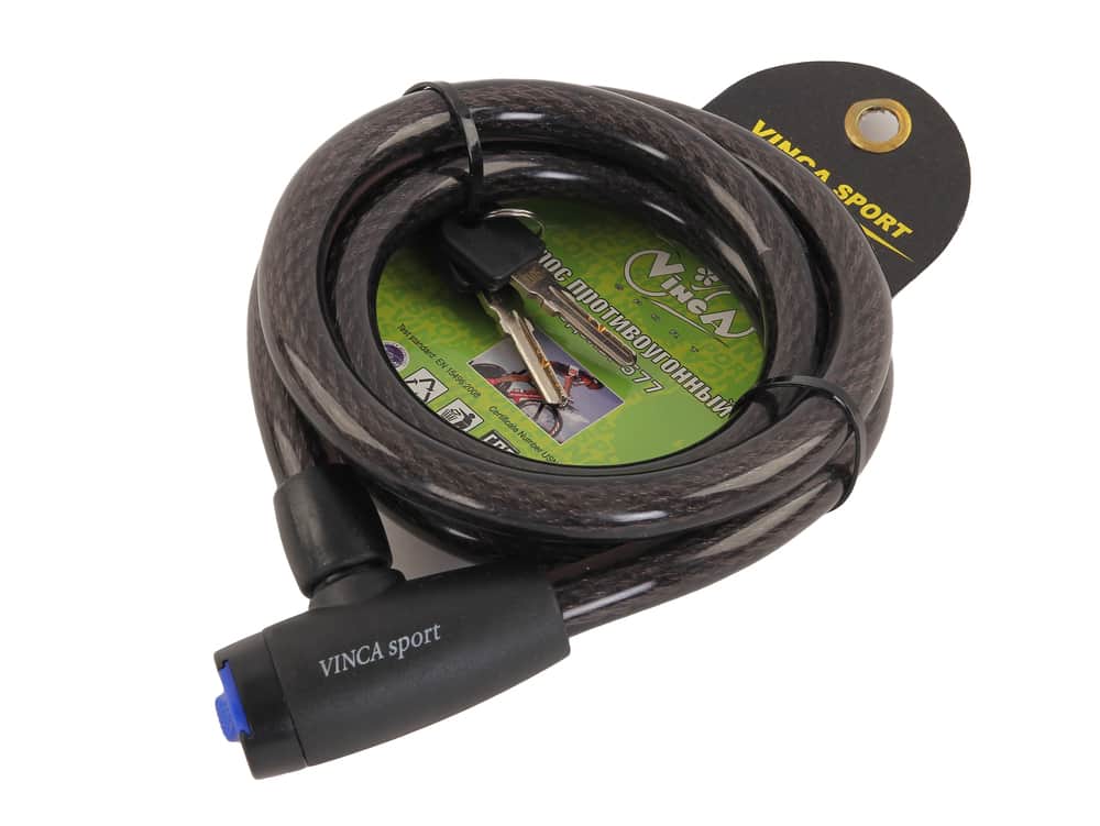 Замок велосипедный с защитой от влаги 15*1500мм, черный тросик. Vinca sport
