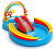 Этот игровой центр Intex имеет два отдельных бассейна, соединенных замечательной горкой. Также в комплект входят мячики и надувные кольца, давая огромный простор для детской фантазии и игр.