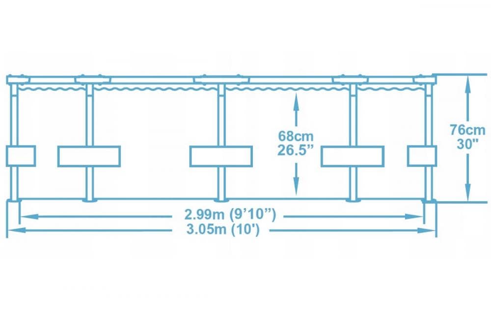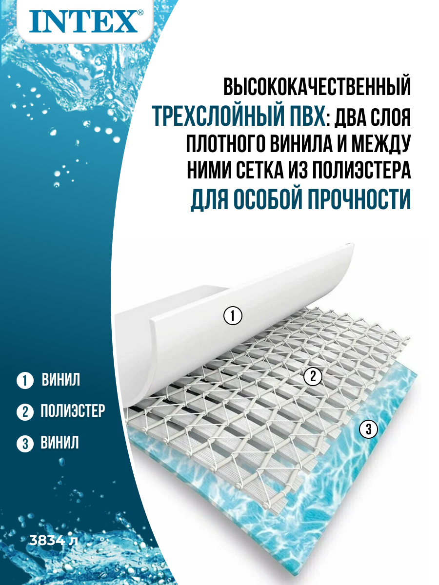 Запатентованная технология SUPER-TOUGH обеспечивает бассейну тройную надежность. Стенки выполнены из трех слоев: два слоя плотного винила и один — полиэстера для особой прочности. Также благодаря стальному каркасу бассейн Metal Frame Pool выдерживает большие нагрузки, в нем одновременно могут купаться несколько человек.