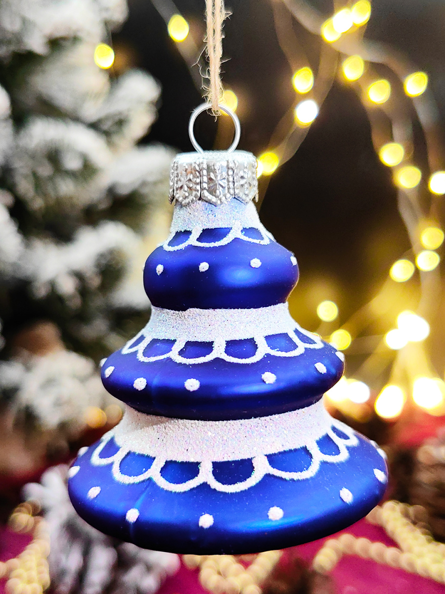 Елочная игрушка Елочка синий 7 см, стекло  // елочка BLUE