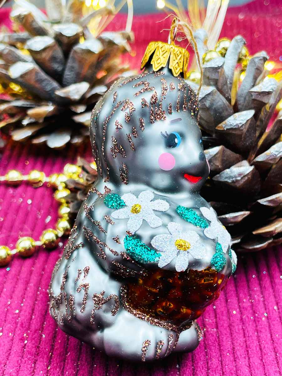 Елочная игрушка Ежик серый 9 см, стекло  // ёжик GRAY