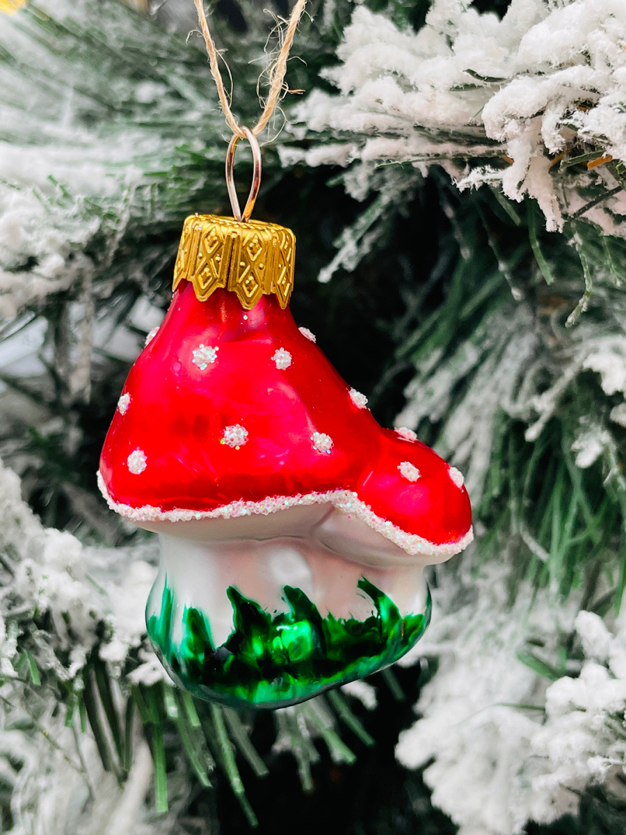 Елочная игрушка Грибочек красный 5 см, стекло  // Грибочек
