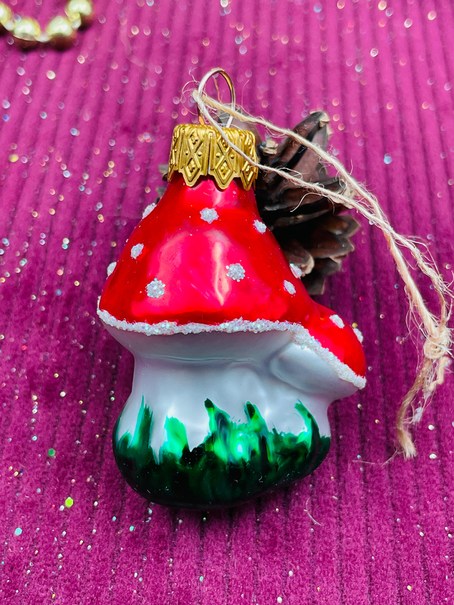 Елочная игрушка Грибочек красный 5 см, стекло // Грибочек