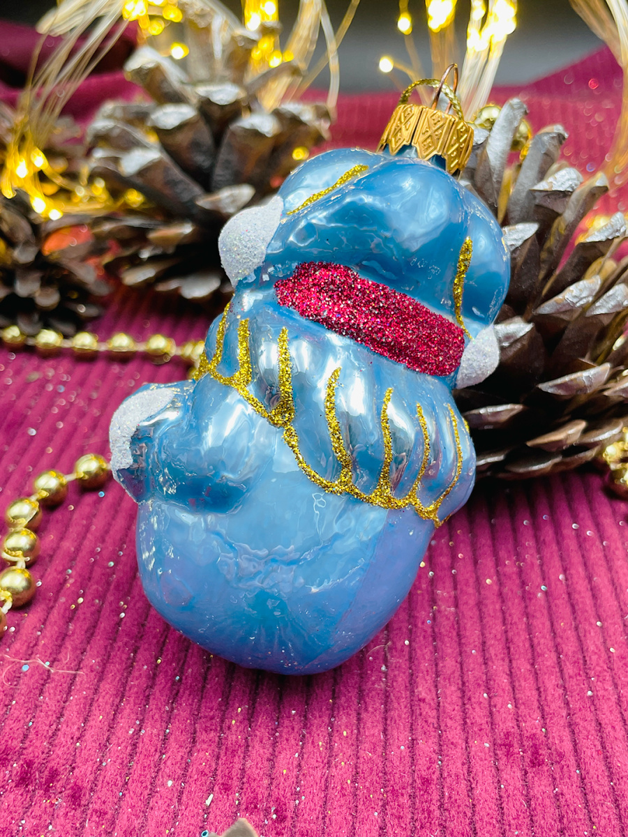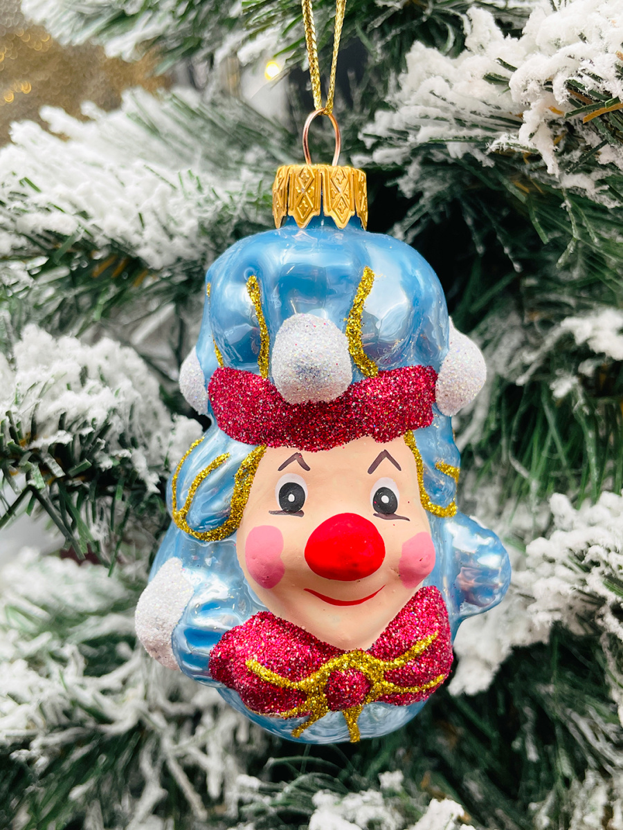 Елочная игрушка Клоун голубой 9 см, стекло  // клоун BLUE