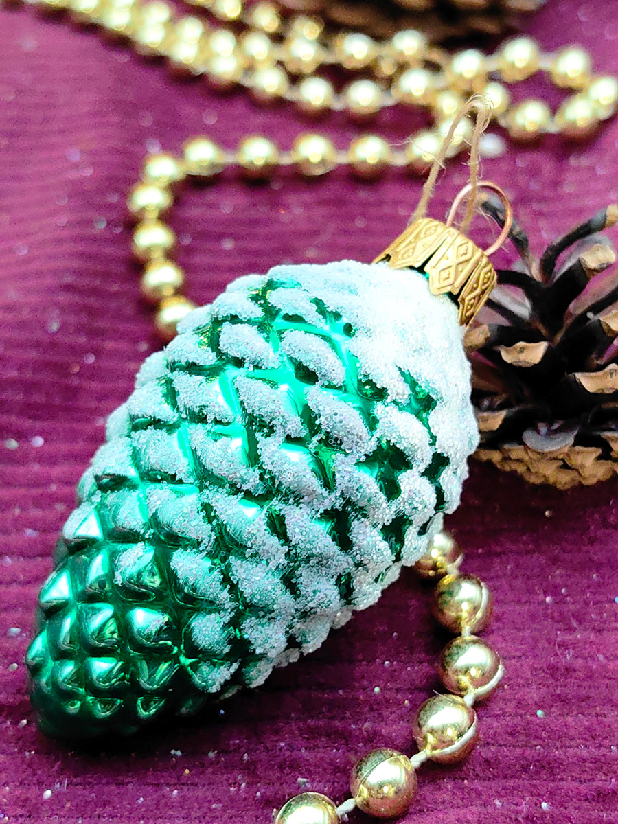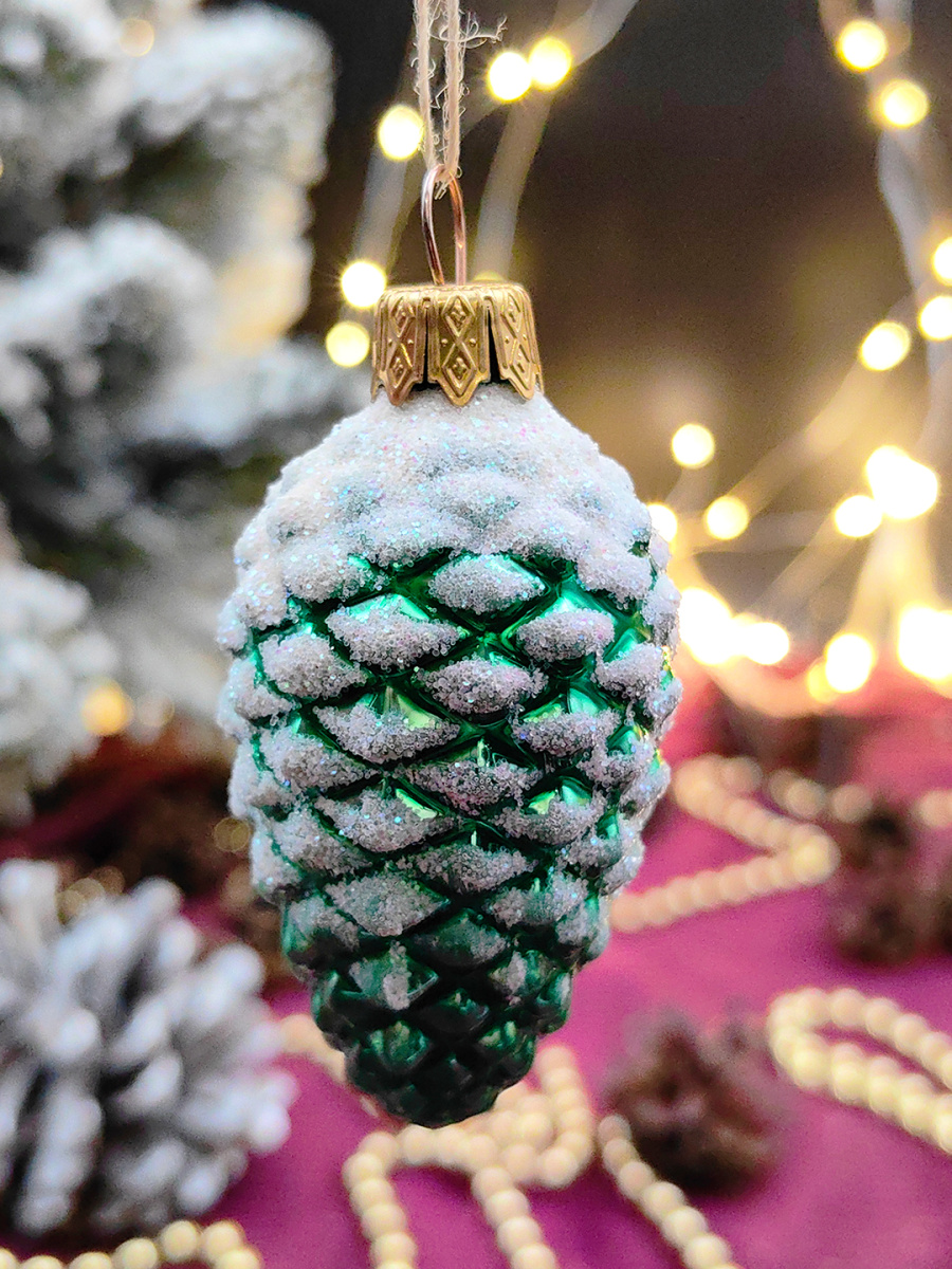 Елочная игрушка Шишка зеленый 7 см, стекло  // шишка GR