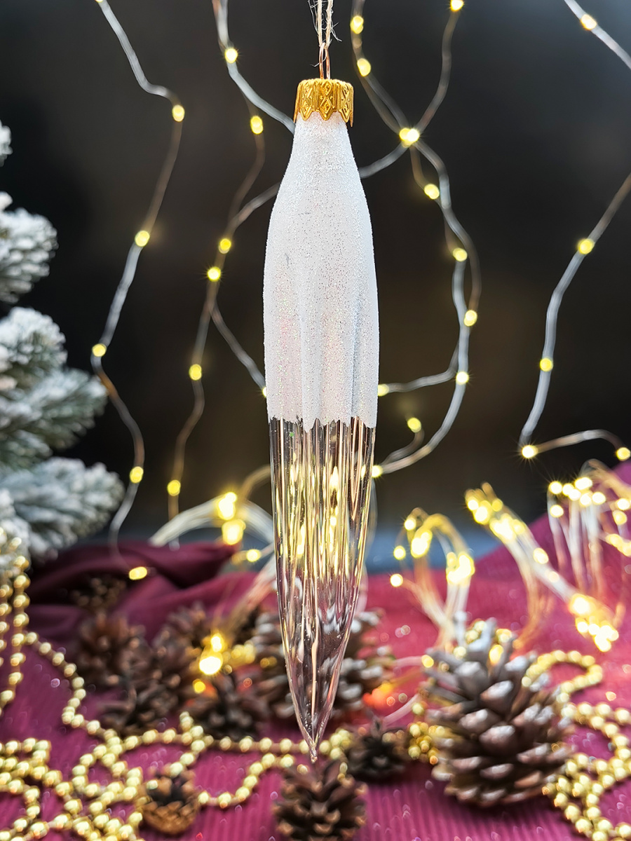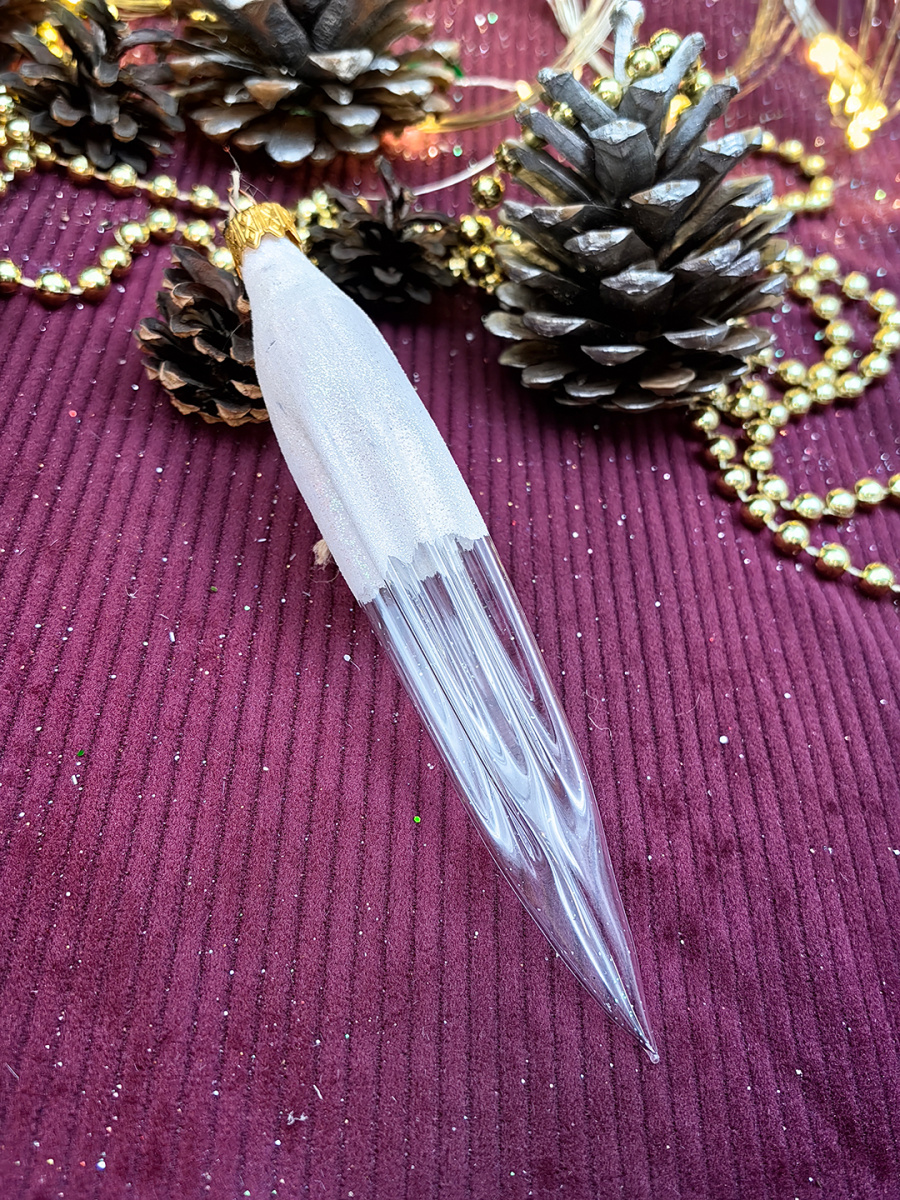 Елочная игрушка Сосулька прозрачный 15 см, стекло  // сосулька TRT