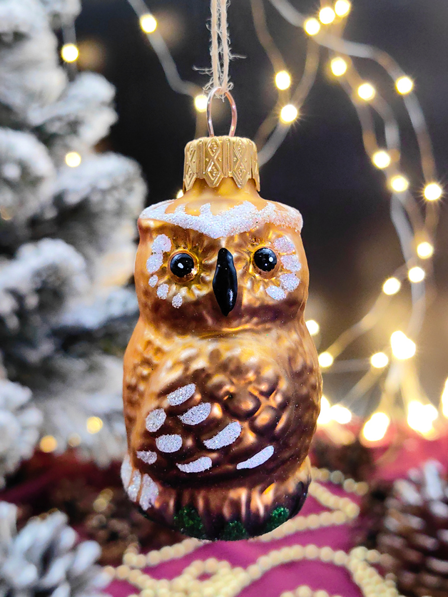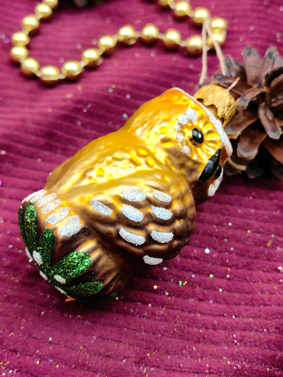 Елочная игрушка Сова бронза 6 см, стекло  // сова
