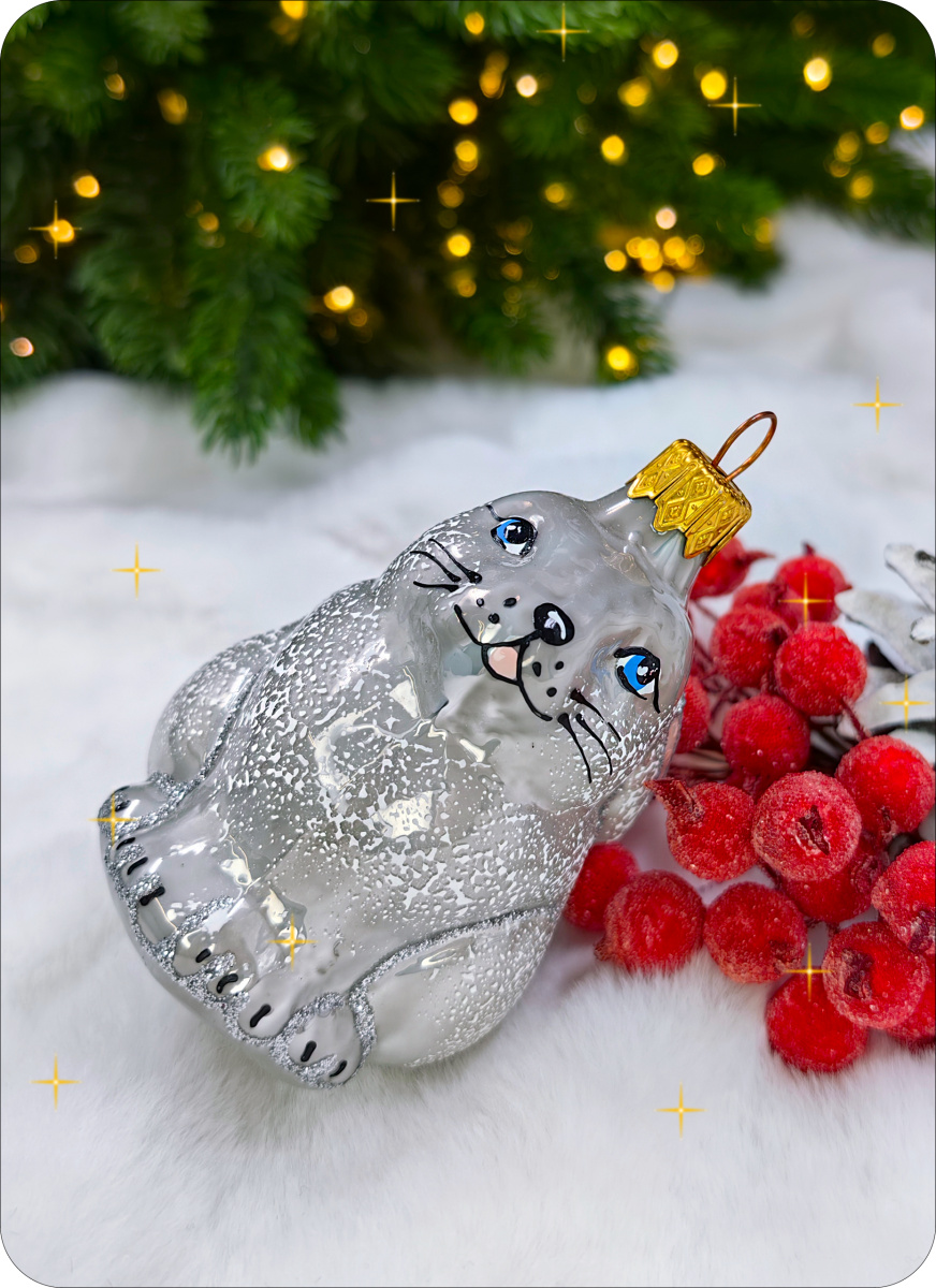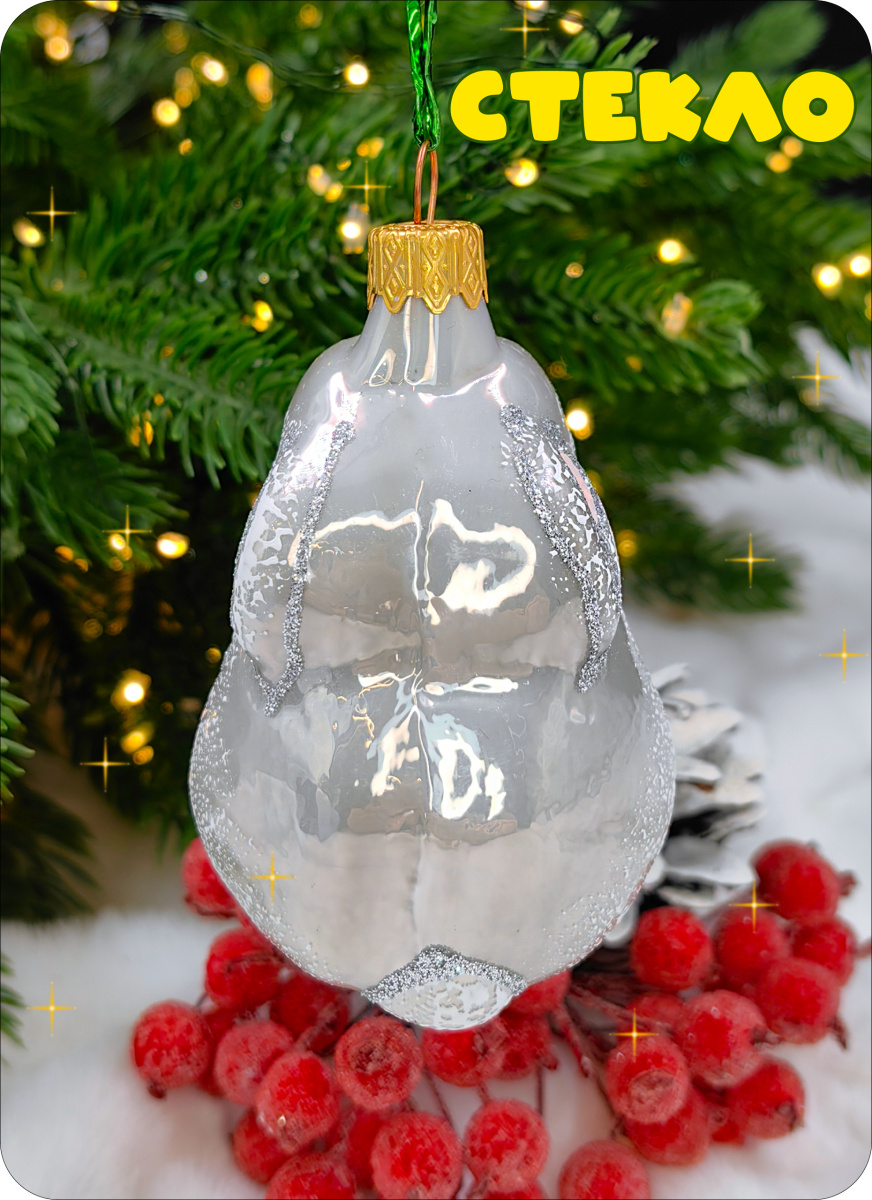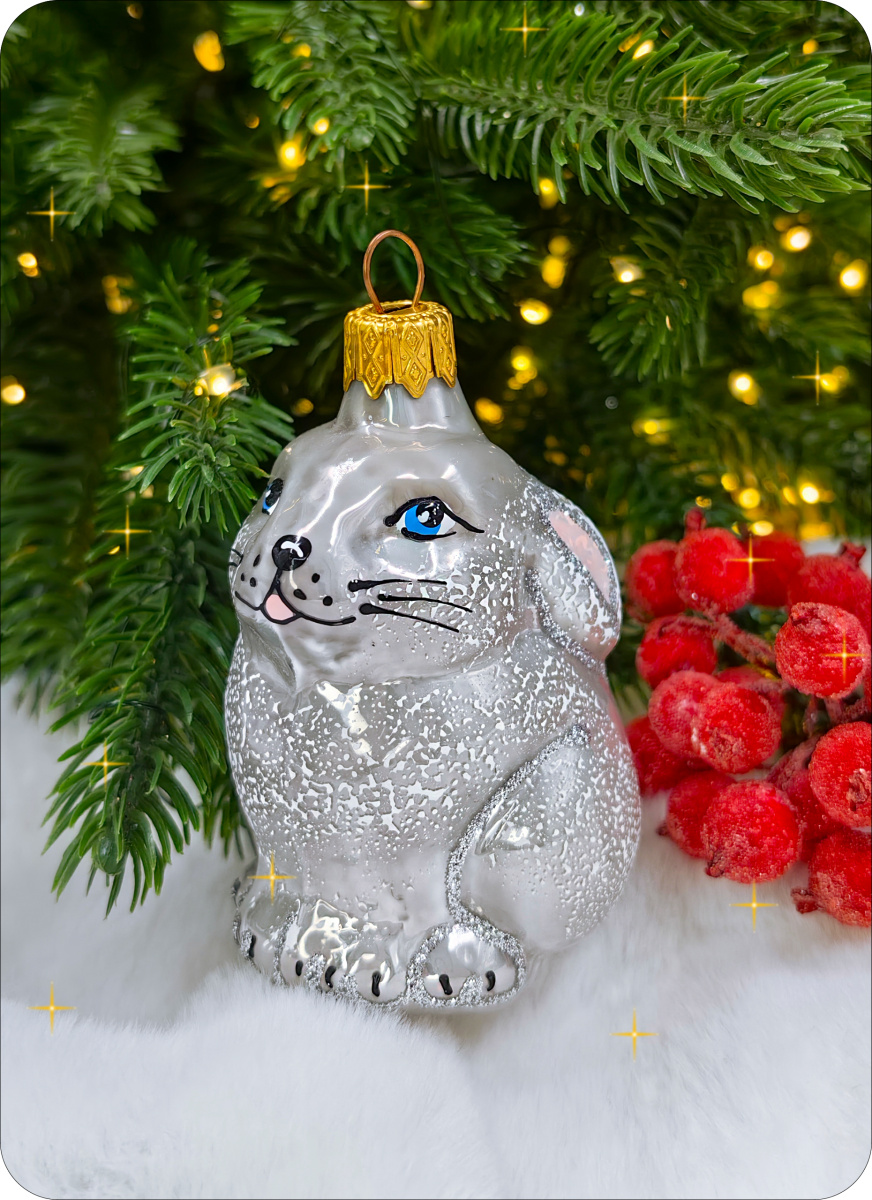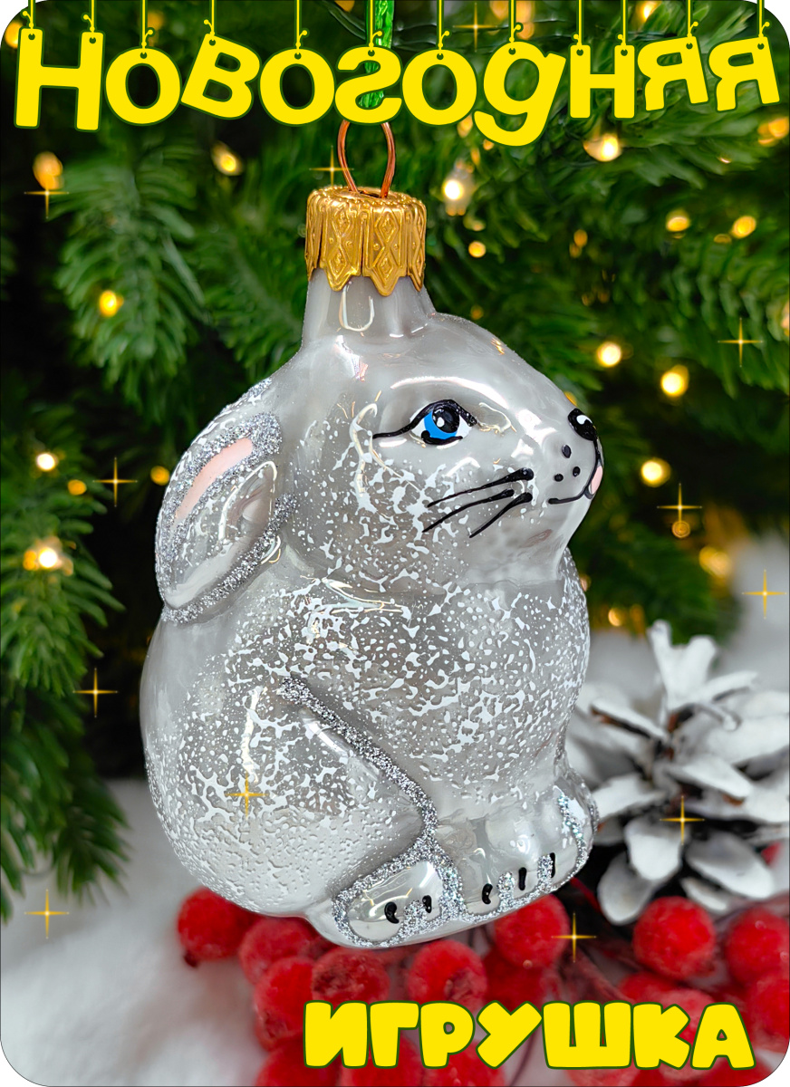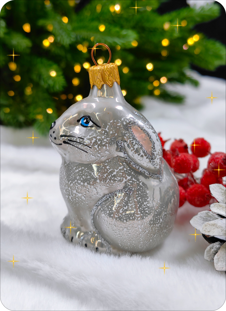Елочная игрушка Зайчик серый 8 см, стекло  // зайчик серый