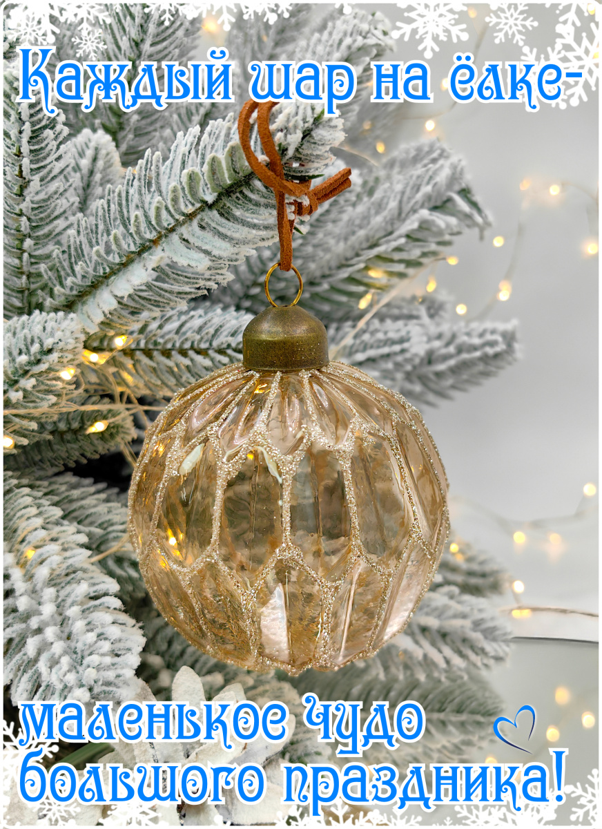 Шар прозрачно-персиковый 8 см, стекло Merry Green MG24009