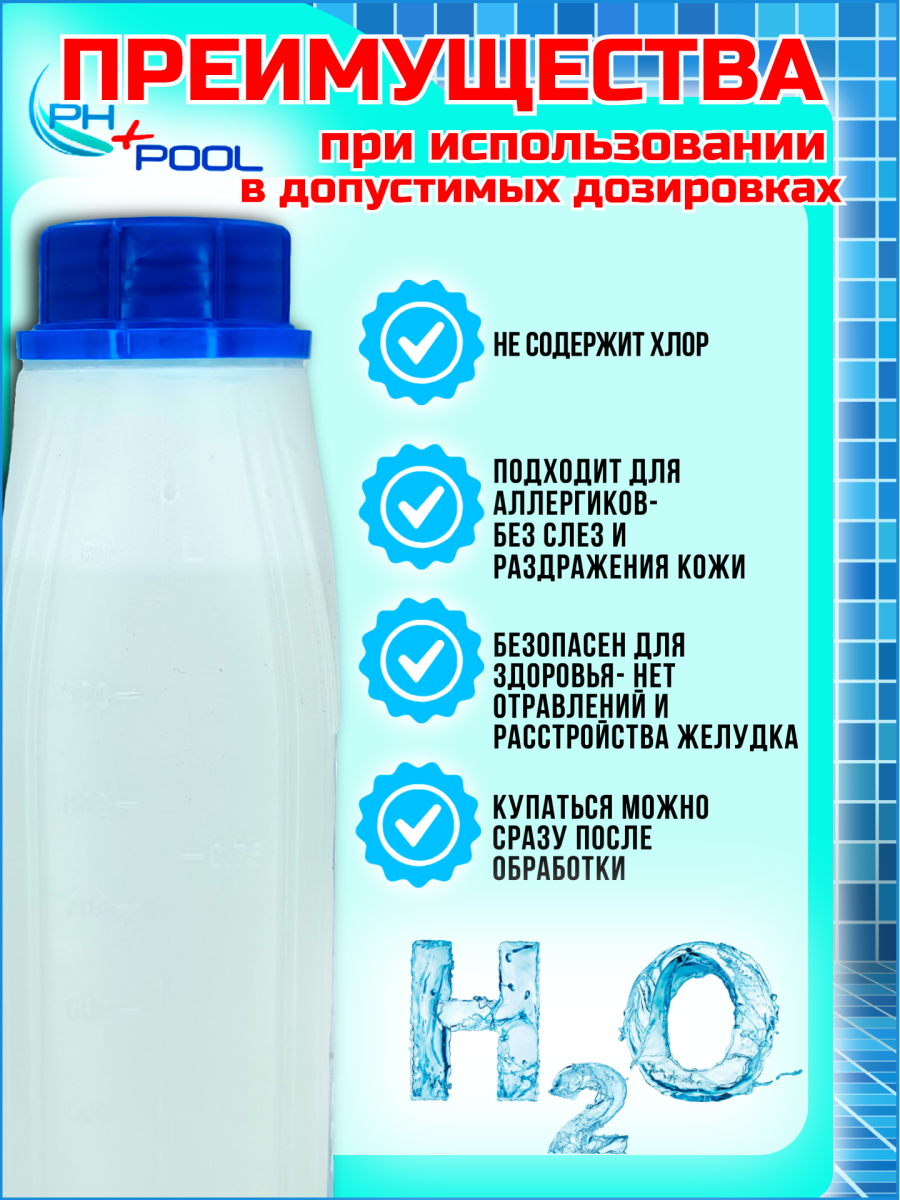 Биопул аналог БИОПАГ - новое эффективное дезинфицирующее средство для бассейна от российского производителя. Бассейн с прозрачной чистой водой — идеальное место для отдыха и активного время препровождения. Но без комплекса мероприятий по очистке и профилактике, искусственный водоём быстро потеряет привлекательный внешний из-за мутной воды и налета. Кроме того, такая вода – может быть опасной для здоровья. Любой сосуд с водой — идеальная среда для развития различного рода патогенных микроорганизмов, бороться с которыми нужно обязательно. Если перед купанием не принять заранее душ, то в воде окажутся косметика, например, дезодорант, частички пота, чешуйки кожи. Первое время — это не заметно глазу, но буквально спустя несколько дней после наполнения бассейна, вода в нем может начать мутнеть. Затем на стенах чаши появится налет, впоследствии приобретающий зеленый оттенок, может начаться образование водорослей. Также в воде и на стенах чаши могут размножаться бактерии, различного рода вирусы и грибки. Они не только портят вид, но и представляют серьёзную опасность для здоровья, особенно детского. Стоит отметить, что использование специальных препаратов необходимо также для нормализации уровня PH, который рекомендуется поддерживать в строго определенных границах. Неправильный PH может вызвать раздражения кожи и глаз. PH+POOL Биопул, аналог биопаг – жидкое многофункциональное средство для дезинфекции бассейна, в основе которого 20% водный раствор полигексаметиленгуанидина гидрохлорида, который имеет бактерицидное и фунгицидное свойство: борется с бактериями и грибком; эффективно против биопленки/слизи; а также препятствует коррозии металлических частей бассейна и оборудования; оказывает флокулирующее действие. Препарат для дезинфекции подходит для открытых/закрытых каркасных/надувных/стационарных бассейнов. Важно чётко следовать инструкции по применению, не завышать дозировку. Средство для очистки воды - гипоаллергенно, разработано специально для детских и частных бассейнов.