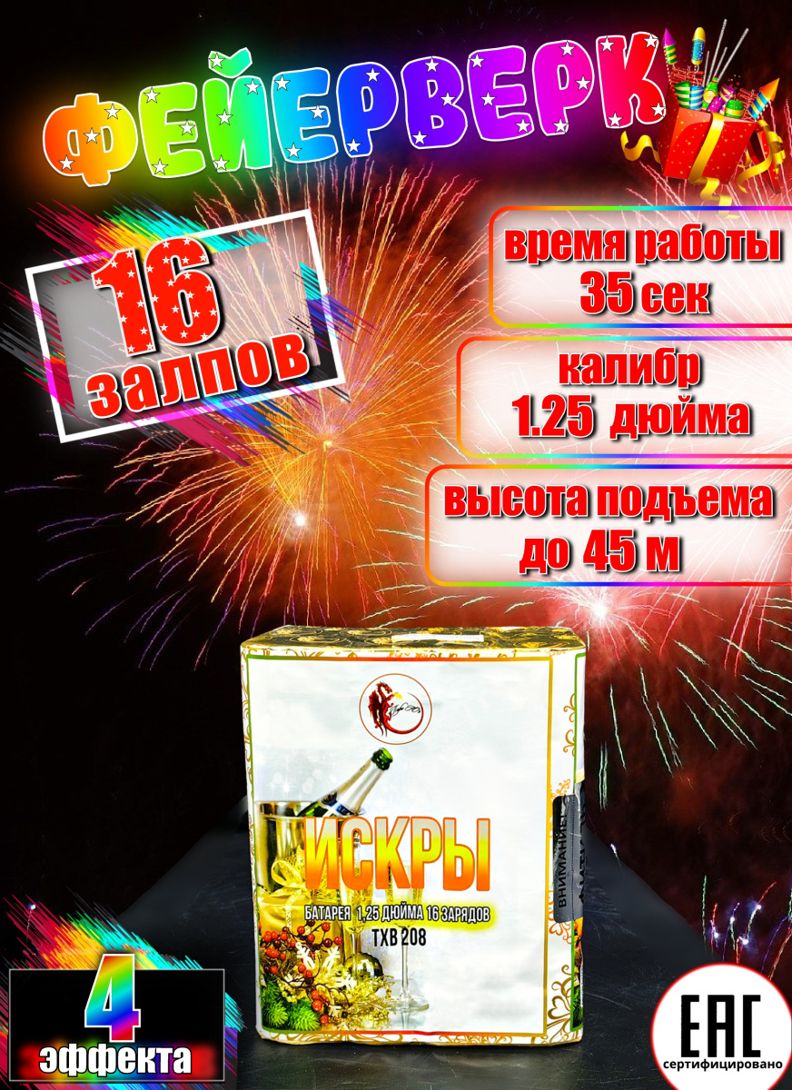 Батарея салютов Искры TXB208 16 выс. 1.25" 35 сек.