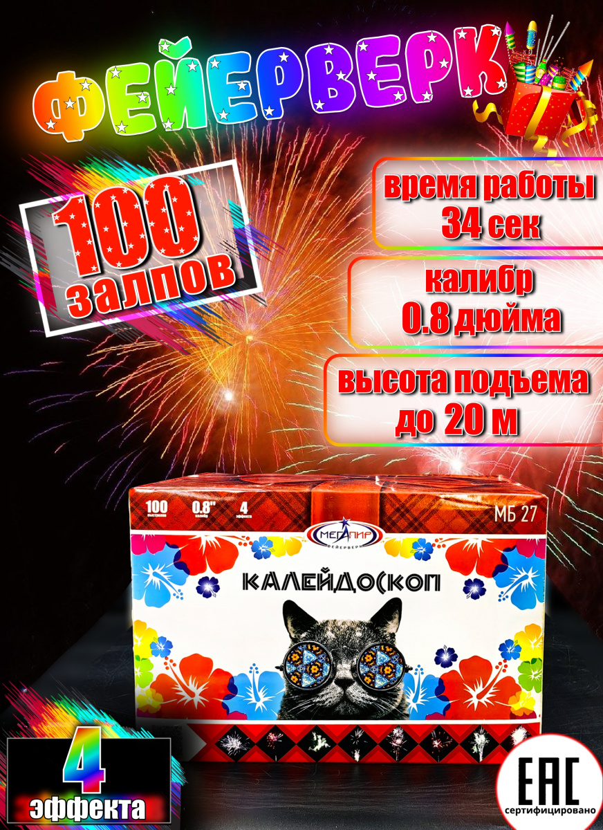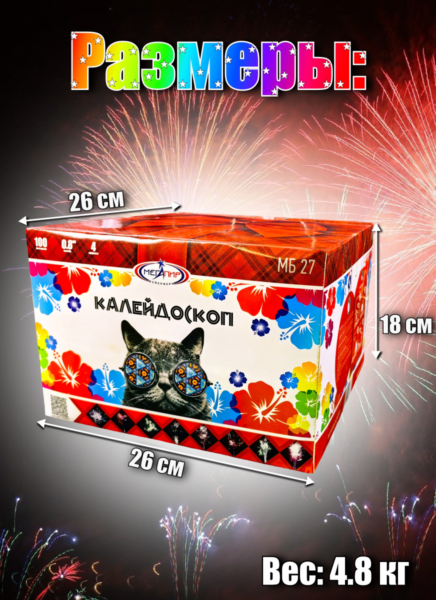 Батарея салютов Калейдоскоп МБ27 100 выс. 0.8" 34 сек.