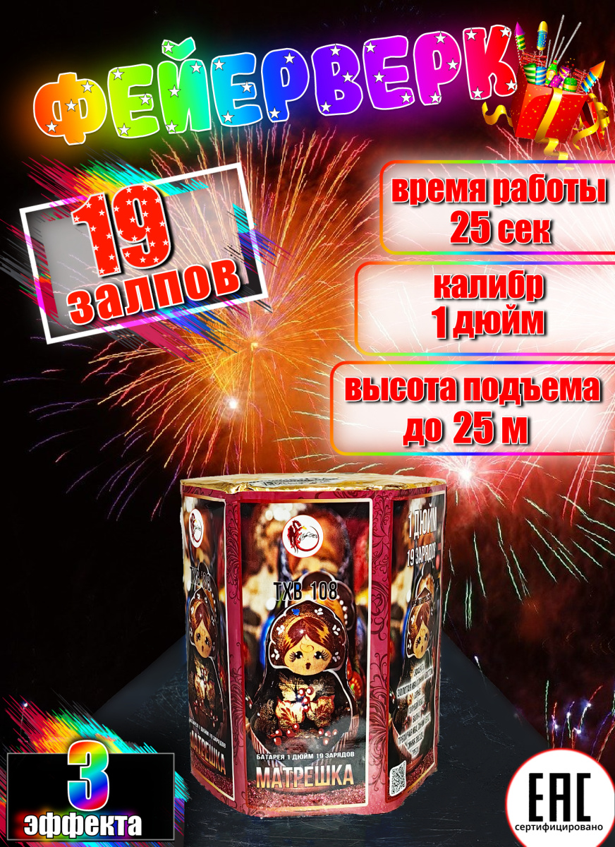Батарея салютов Матрешка TXB108 19 выс. 1" 25 сек.