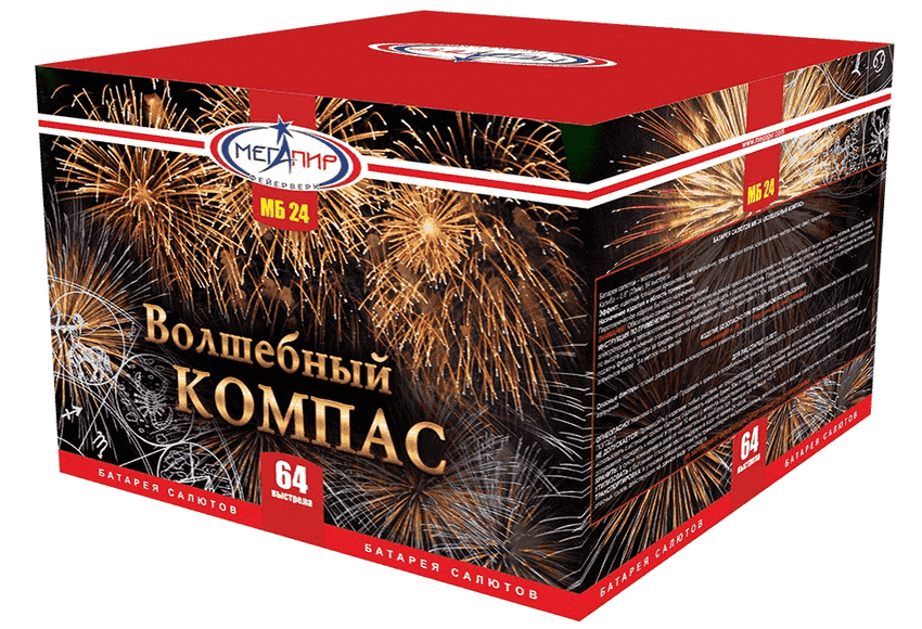 Батарея салютов Волшебный компас МБ24 64 выс. 0.8" 60 сек.