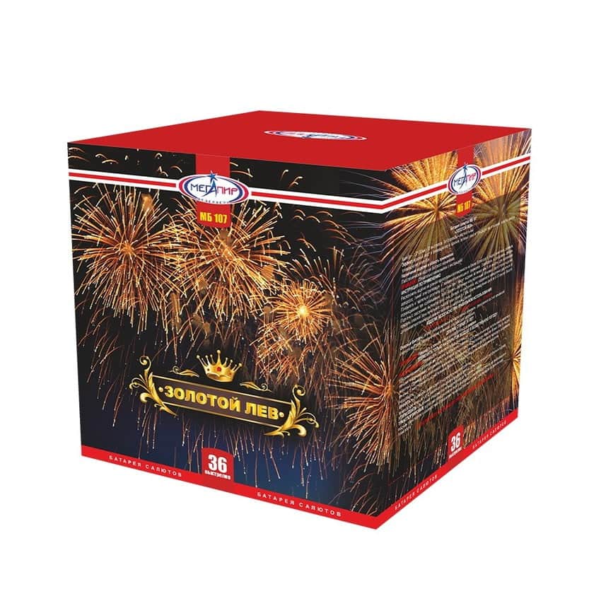 Батарея салютов Золотой лев МБ107 36 выс. 1.2" 43 сек.