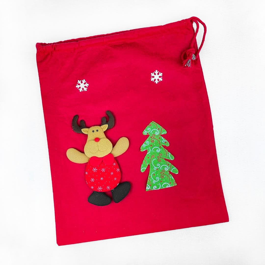Мешочек для подарков с оленем 53x45 см красный  9817400ol