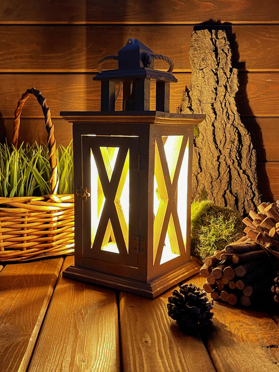 Фонарь декоративный деревянный бежевый V-26Теплое прикосновение