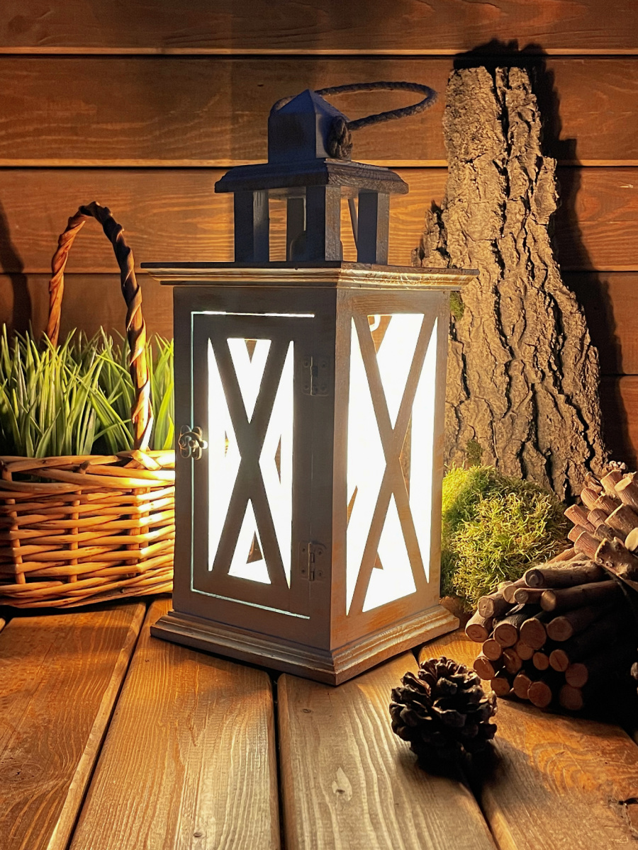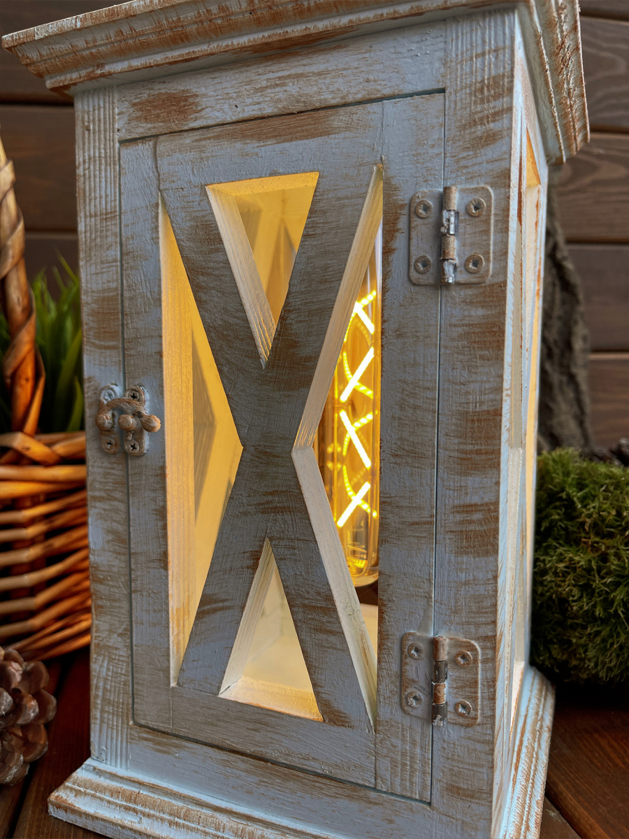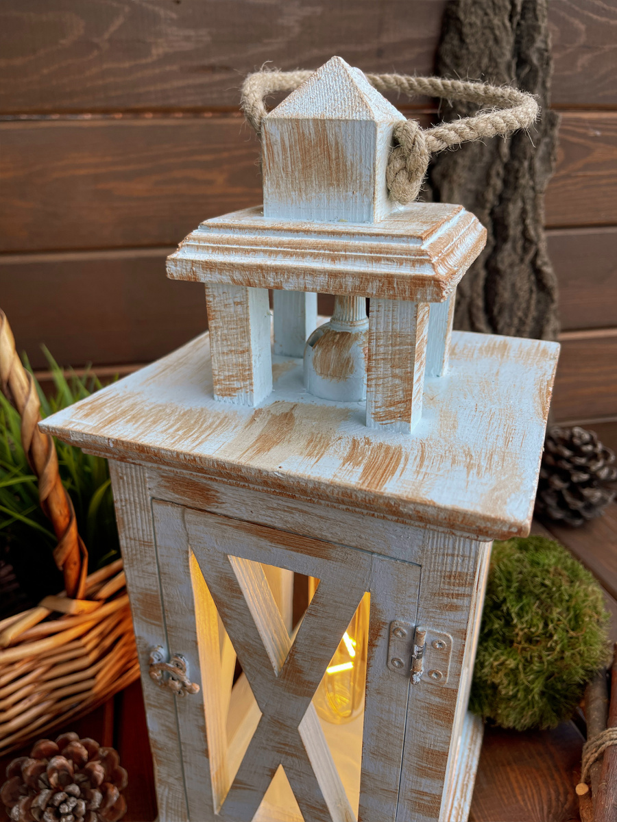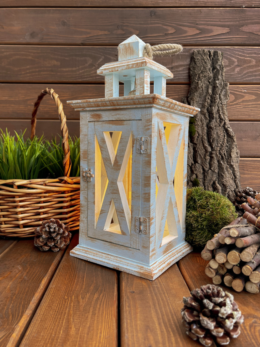 Фонарь декоративный деревянный голубой V-27Юнный принц