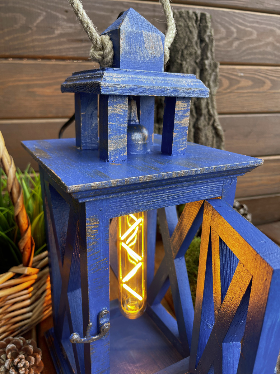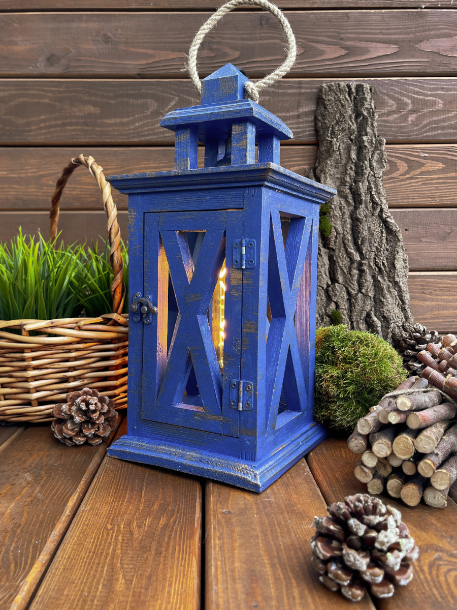 Фонарь декоративный деревянный  индиго V-18Индиго