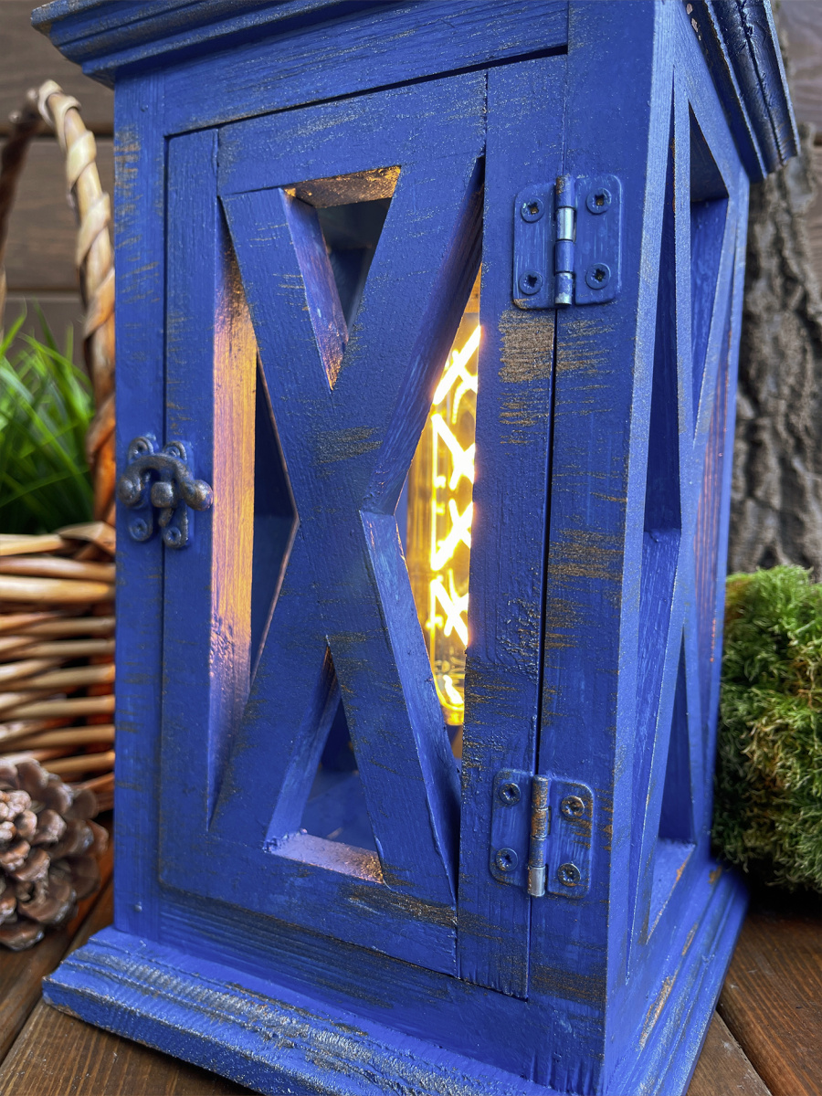 Фонарь декоративный деревянный индиго V-18Индиго