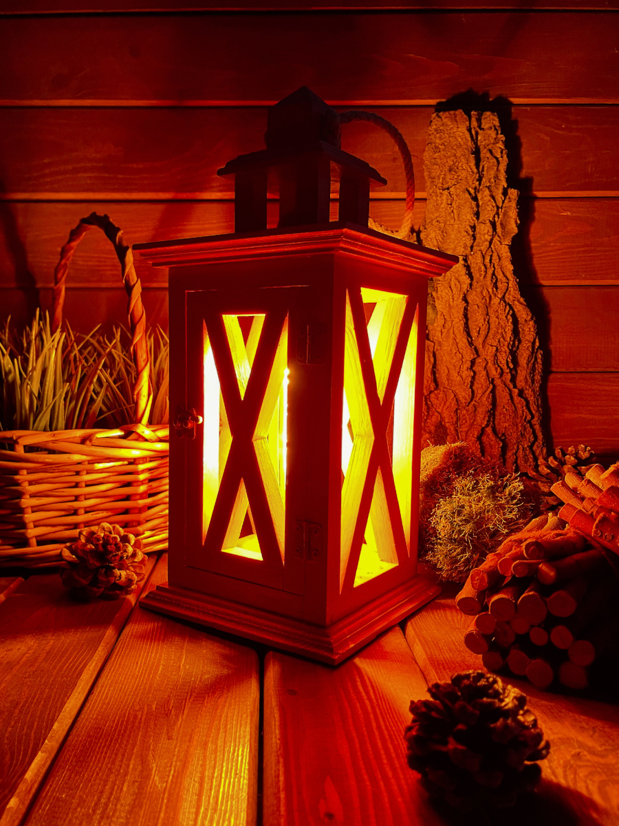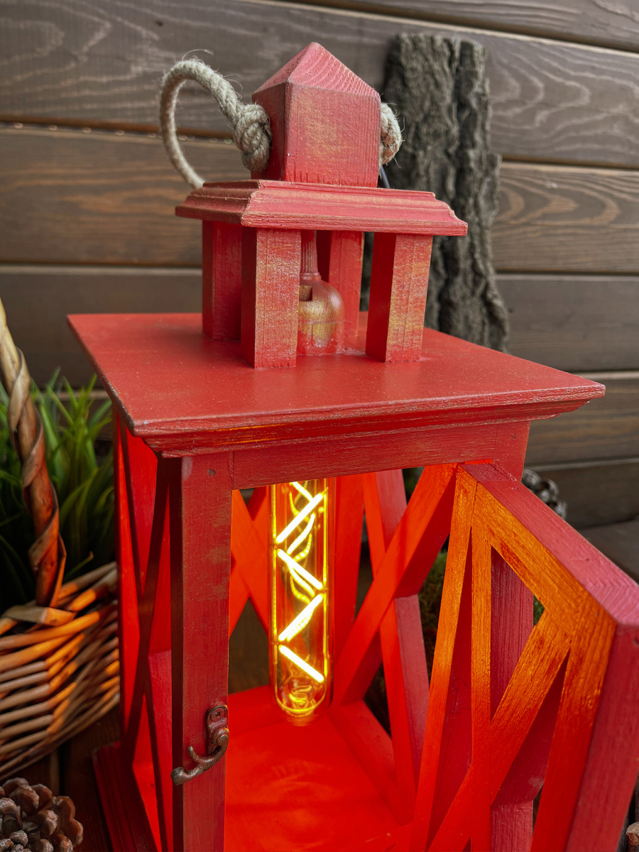 Фонарь декоративный деревянный  красный V-20Красная помада