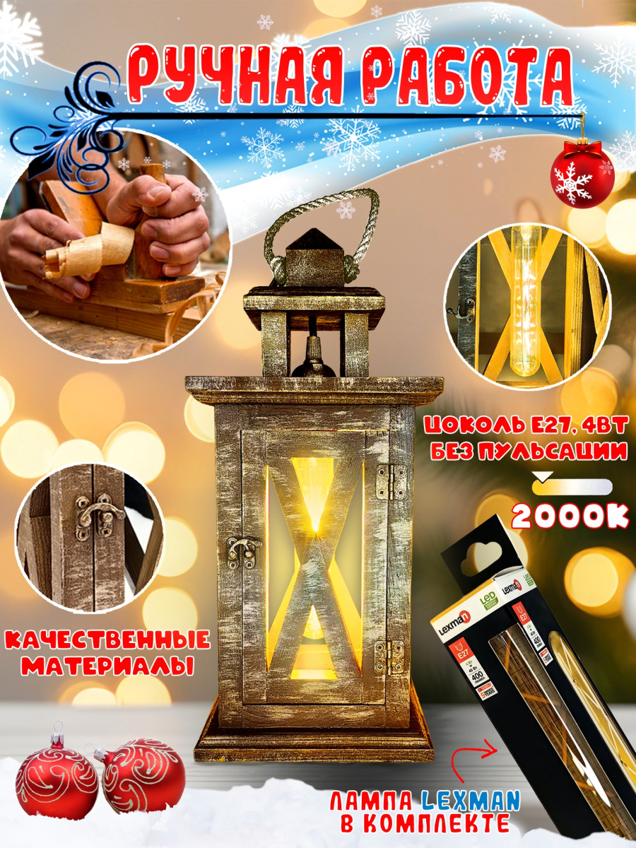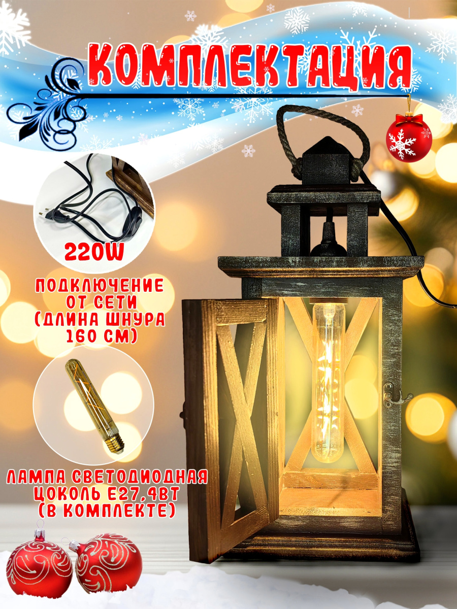 Скорее всего не существует людей, которые бы не хотели окружать себя стильными модными красивыми вещами и предметами. И это вполне логичное и естественное желание. Взгляните на фото. Деревянный декор уже давно вошел в сегмент предметов, который получил широчайшее распространение в организации пространства помещений и создании уюта вокруг себя. Декоративная лампа фонарик, которая выполнена в форме старинного переносного фонаря подсвечника - это, пожалуй, один из самых трендовых элементов для создания домашней атмосферы. Наш светильник изготовлен из натурального дерева, это массив сосны, и покрыт качественной мебельной краской, с модным эффектом старины, который идеально вписывается и в, любимый многими, стиль лофт и скандинавский стиль, да и в практически любой дизайн-интерьер он гармонично подходит. Домашний комнатный светильник имеет несколько вариантов использования, точнее установки - он может быть как напольный светильник и стоять где-то в углу, создавая приятное легкое романтичное свечение, для создания атмосферы уединения и уюта; может быть как настольная лампа, особенно если любите почитать при тусклом свете, или что-то написать; а можете подвесить его и использовать как импровизированную люстру, либо как уличный декоративный фонарь на пороге дома, или для освещения веранды, беседки или летней кухни. В комплекте с фонарем идет модная лампочка с ярко выраженной нитью накала и цоколем Е27. Белый цвет является максимально универсальным, и Вы точно найдете применение данному гаджету. У Вас есть дача или загородный дом?- супер, наш светильник как нельзя лучше подойдет Вам для украшения своего дома или летней кухни. У Вас большая квартира или дом? - деревянный стильный торшер разбавит своим присутствием антураж любой комнаты и привнесет нотку расслабленности. Согласитесь, что это просто шикарный подарок маме папе брату бабушке любимой девушке мужу коллеге на новоселье на день рождения Новый год любой праздник переезд окончание ремонта. Ручное производство и использование только самых качественных материалов - залог надежности, долговечности и высочайшего качества изделия. Порадуйте себя и своих близких присутствием в своей жизни красивых качественных и дорогих вещей.