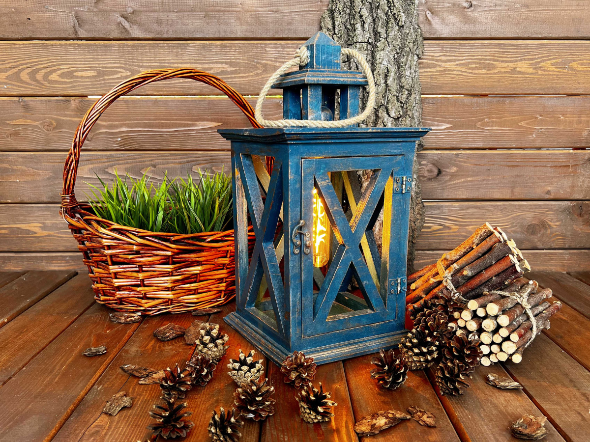 Фонарь декоративный деревянный лазурный V-13Глубокие чувства - большой