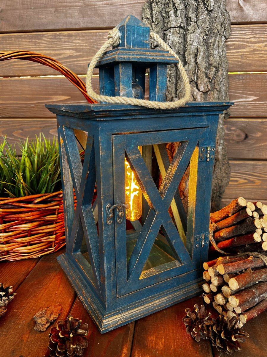 Фонарь декоративный деревянный  лазурный V-13Глубокие чувства - большой