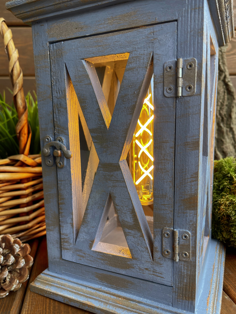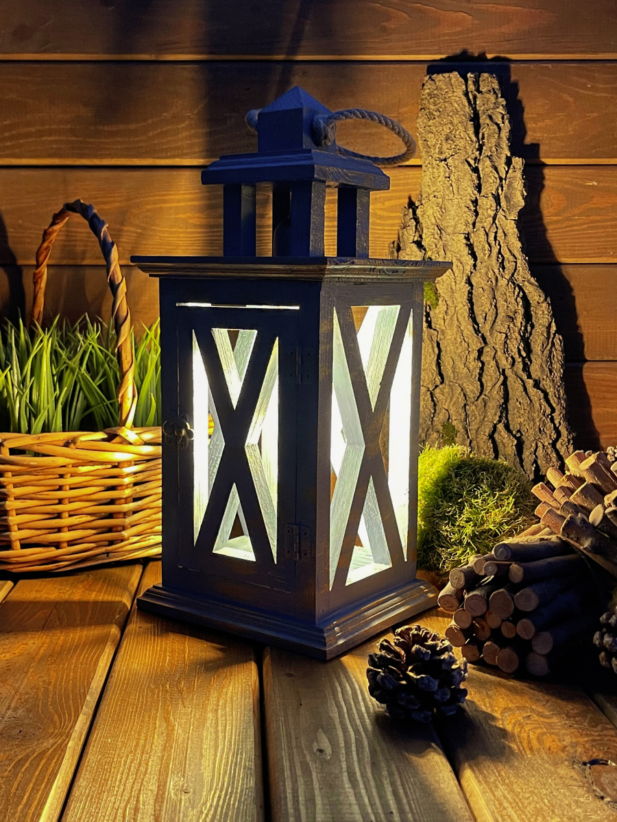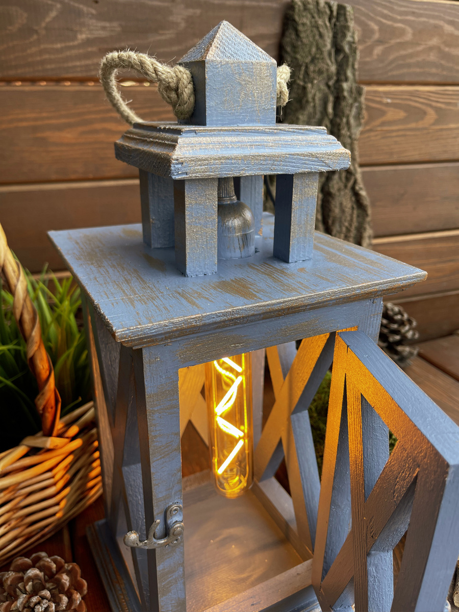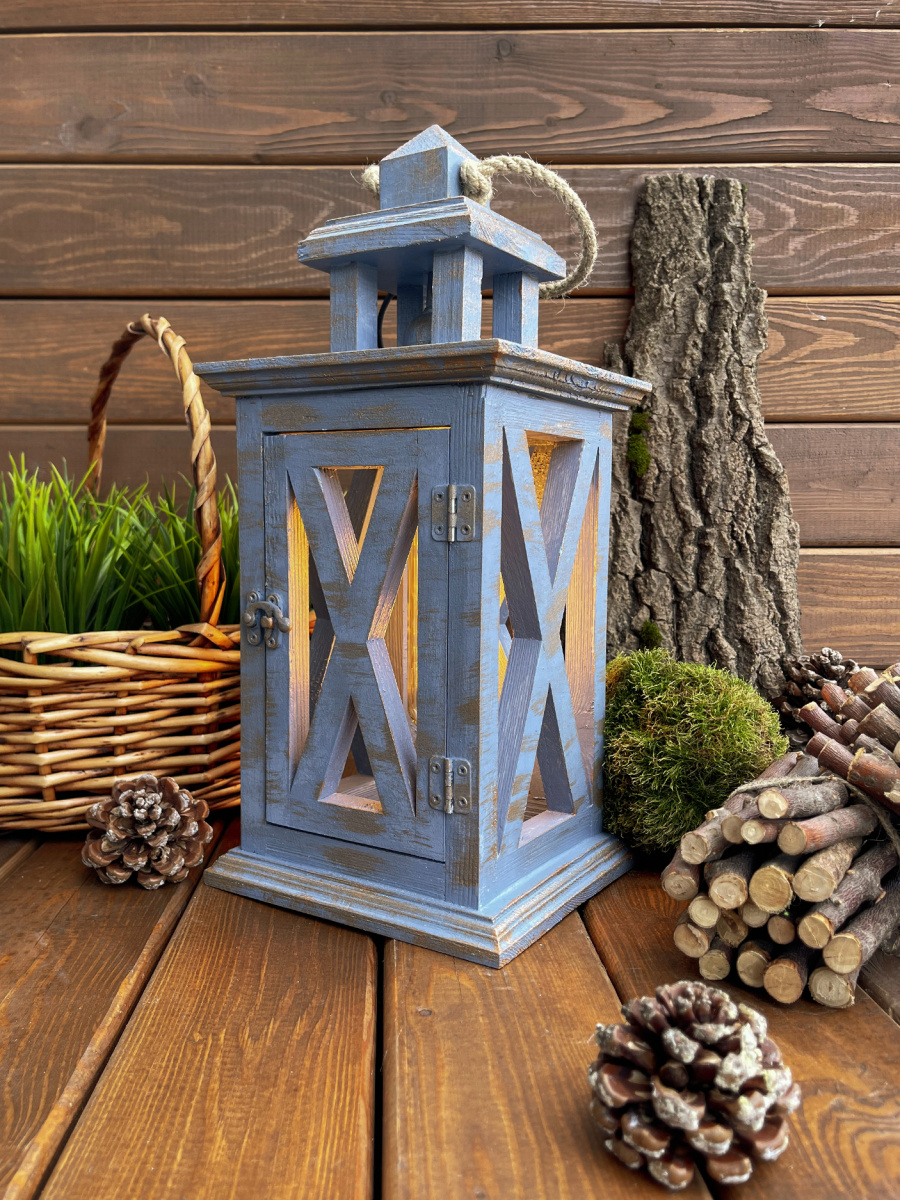 Фонарь декоративный деревянный небесно-голубой V-21Ночное притяжение