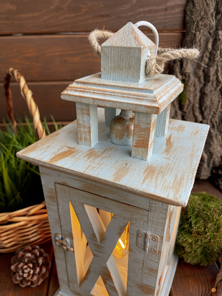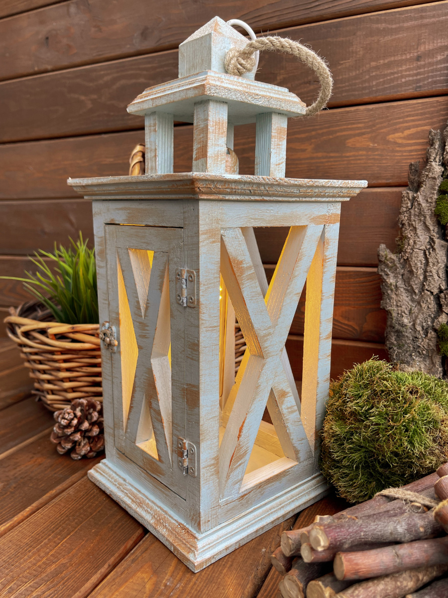 Фонарь декоративный деревянный серо-голубой V-24Сензария