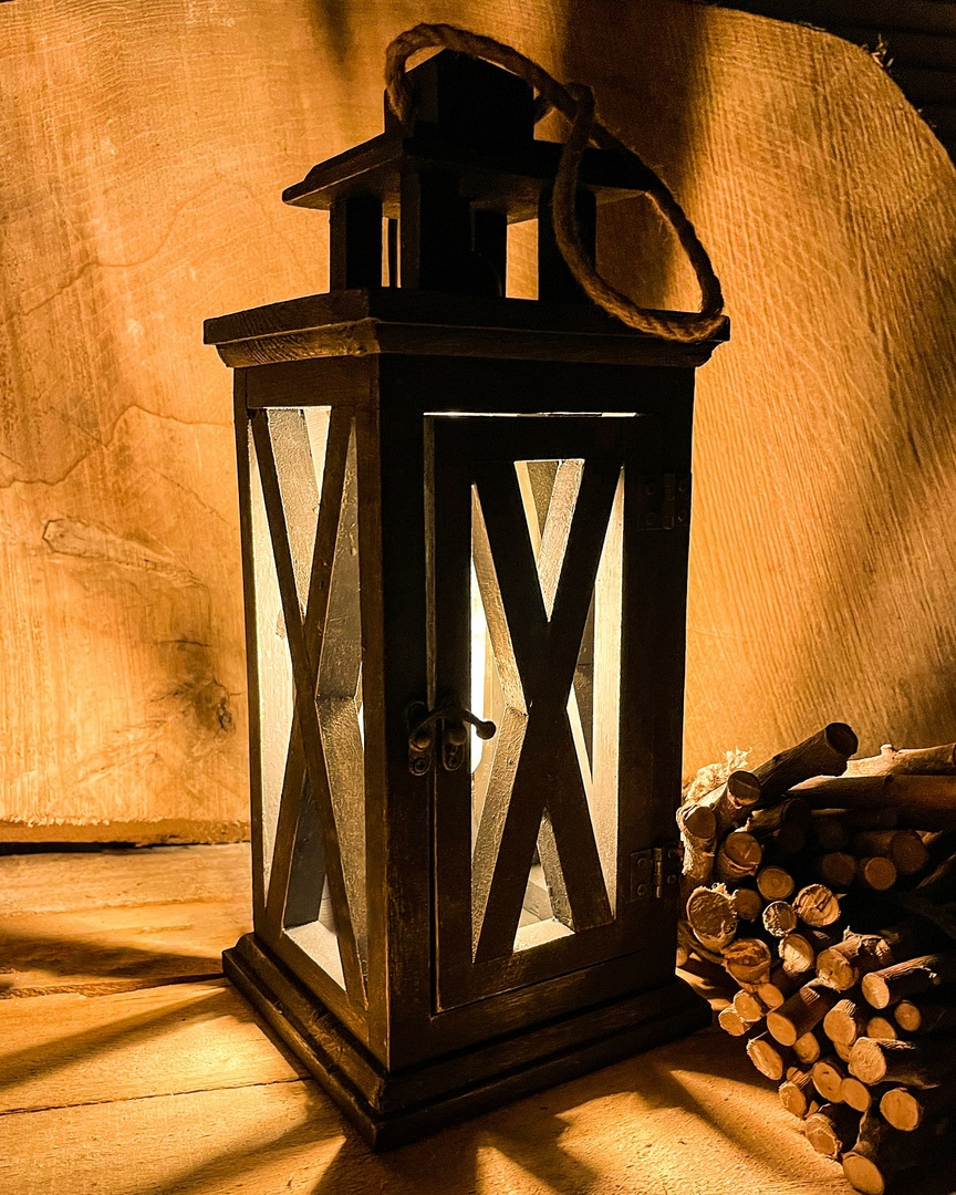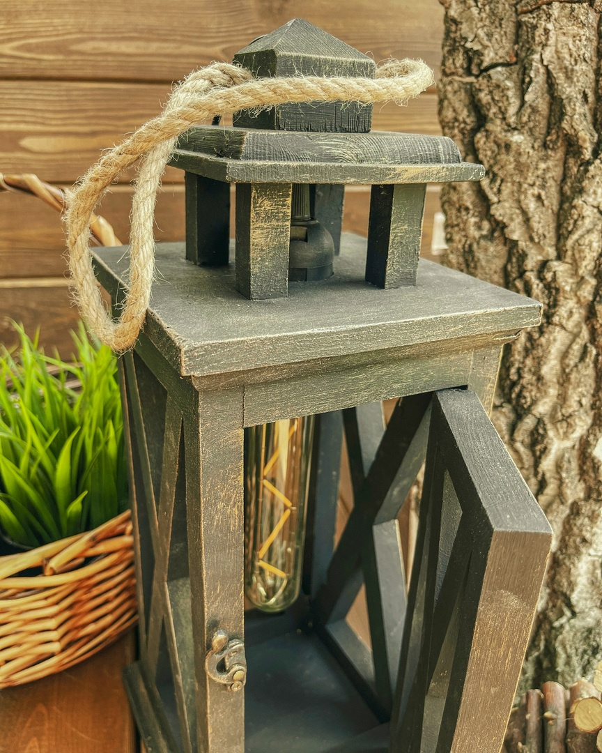 Фонарь декоративный деревянный темно-серый V-11Черный бархат