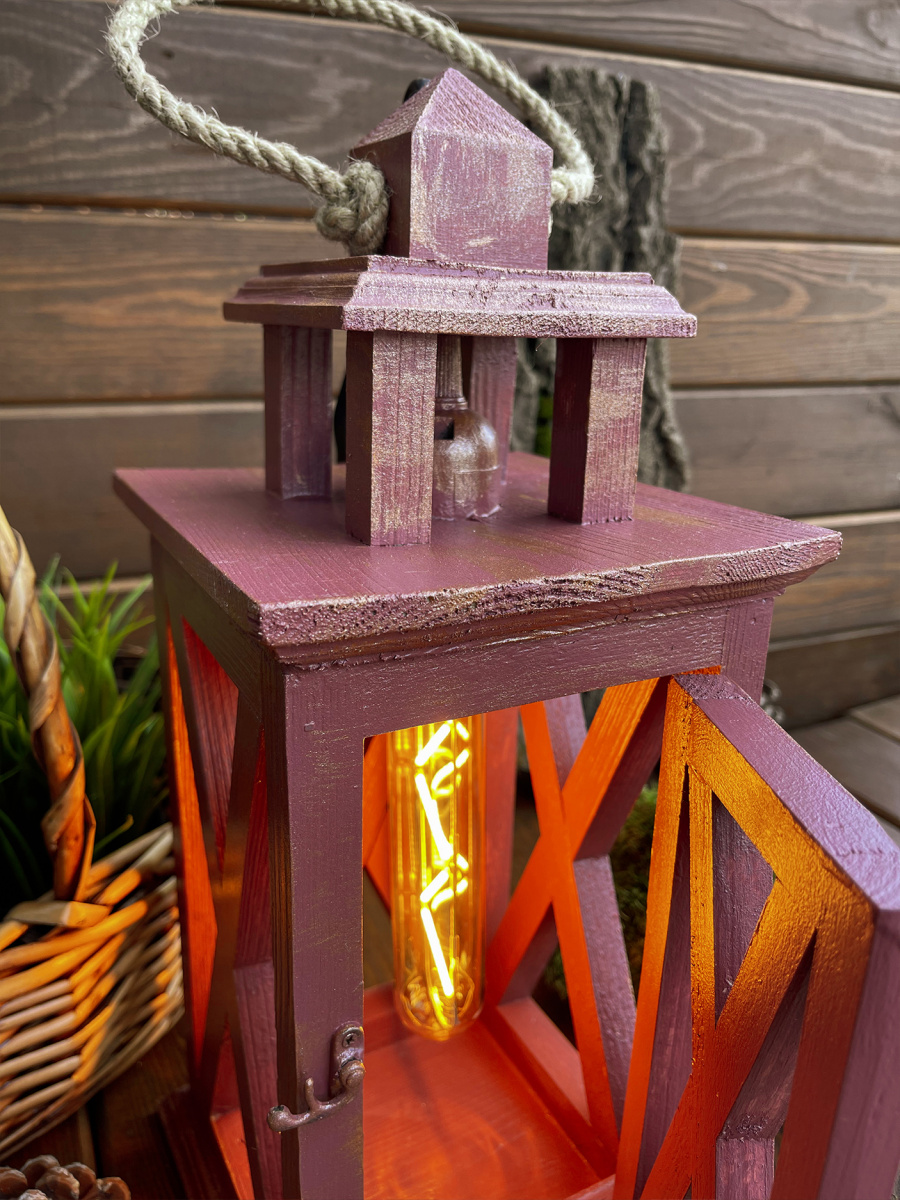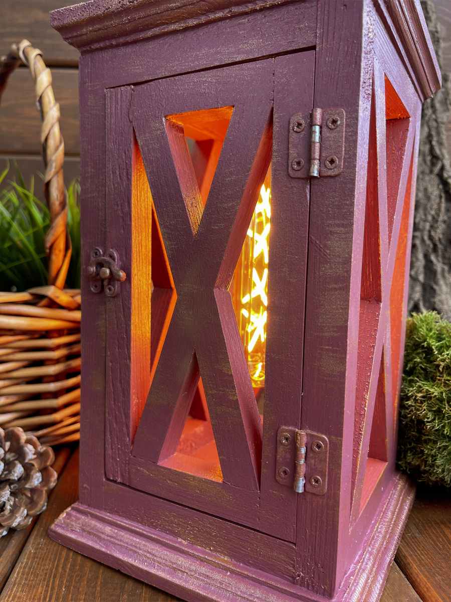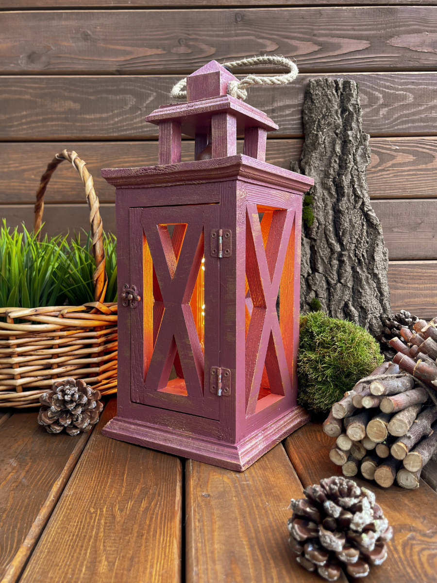 Фонарь декоративный деревянный  винный V-16Винтажный кармин