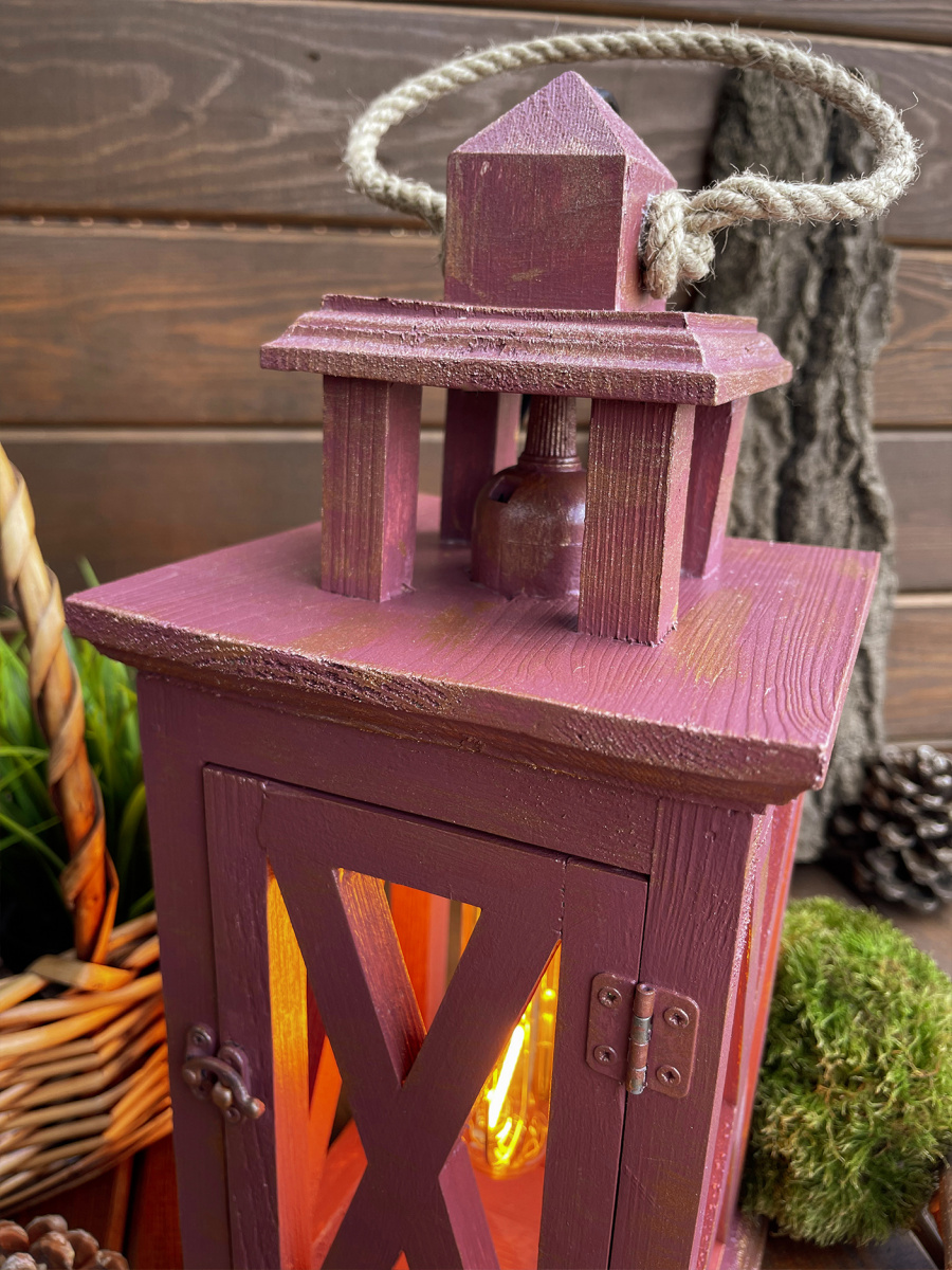 Фонарь декоративный деревянный винный V-16Винтажный кармин
