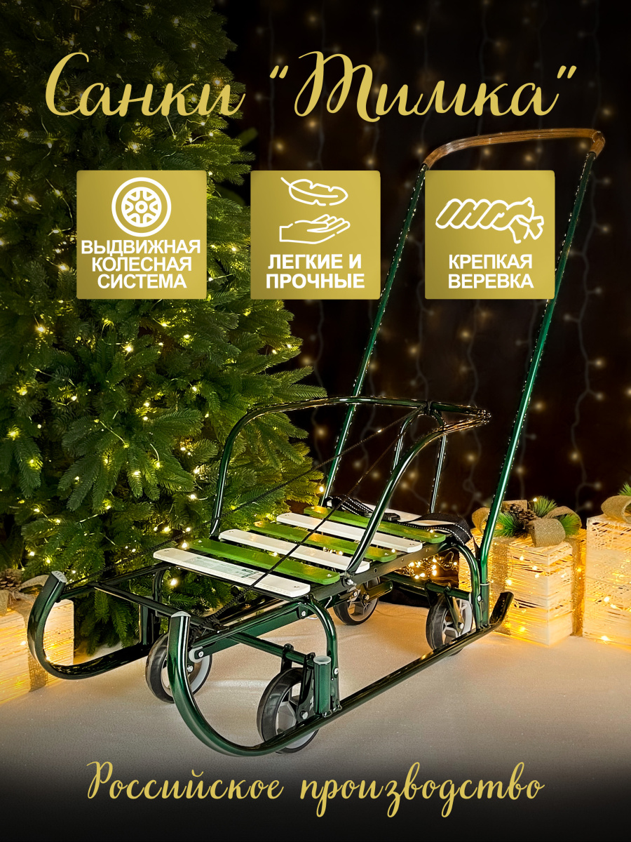 Санки с ручкой детские Тимка 6 универсал зеленый лак 5863564/Т6У/32