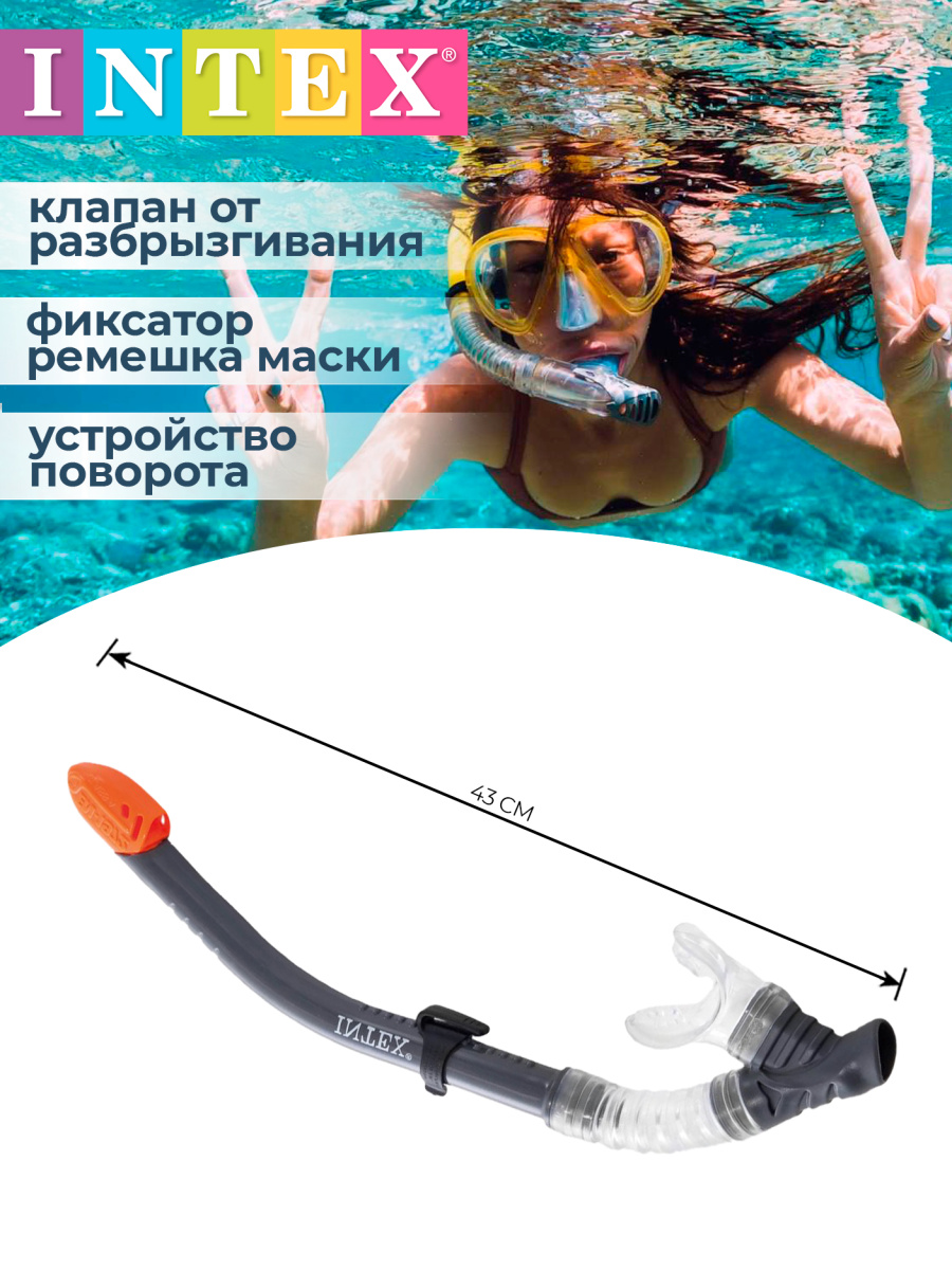 Трубка для плавания Aqua-Flow Intex 55929 - обновленная версия трубки 55928, улучшен воздушный клапан Трубка имеет мягкий эластичный загубник, свободно меняющий положение,сделана из поливинилхлорида. Имеется крепление для маски.
