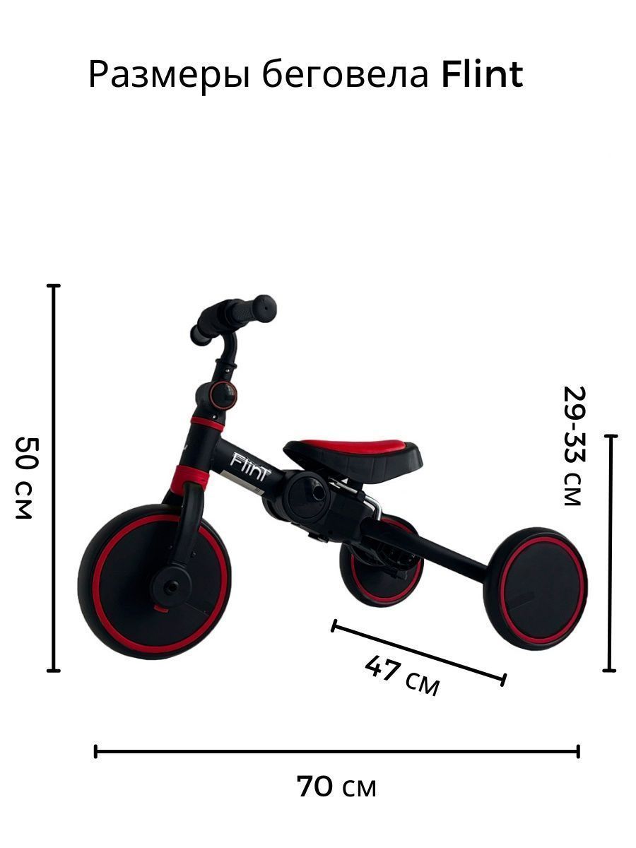 Для безопасности малыша предусмотрен режим холостого хода у педалей, поворот переднего колеса ограничен 20 градусами и прорезиненные ручки на руле для надежного хвата руля. Телескопическая родительская съемная ручка, которая подойдет под любой рост. Сиденье регулируется по высоте и подходит как для мальчиков, так и для девочек. Простой механизм трансформации и небольшие габариты в сложенном виде позволят брать беговел Flint на каждую прогулку или в дорогу.