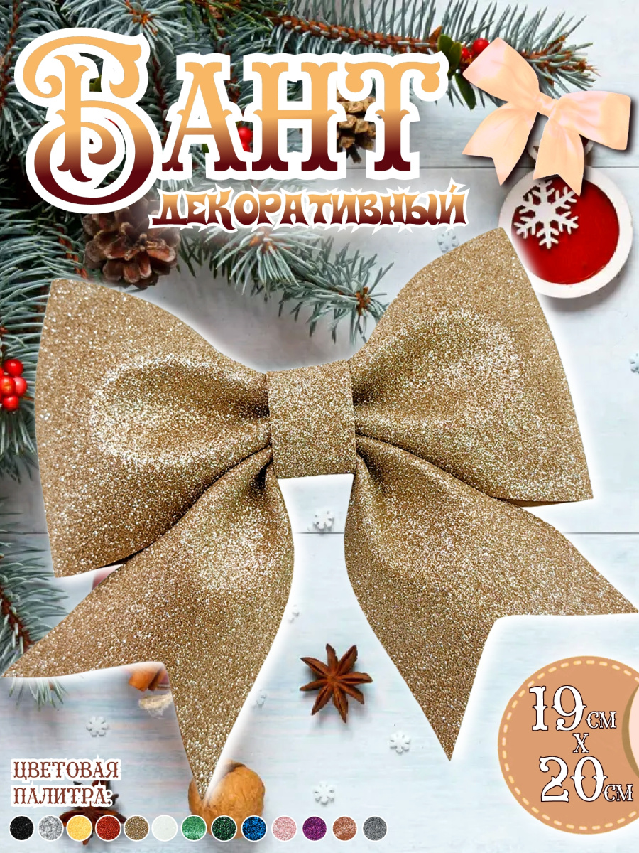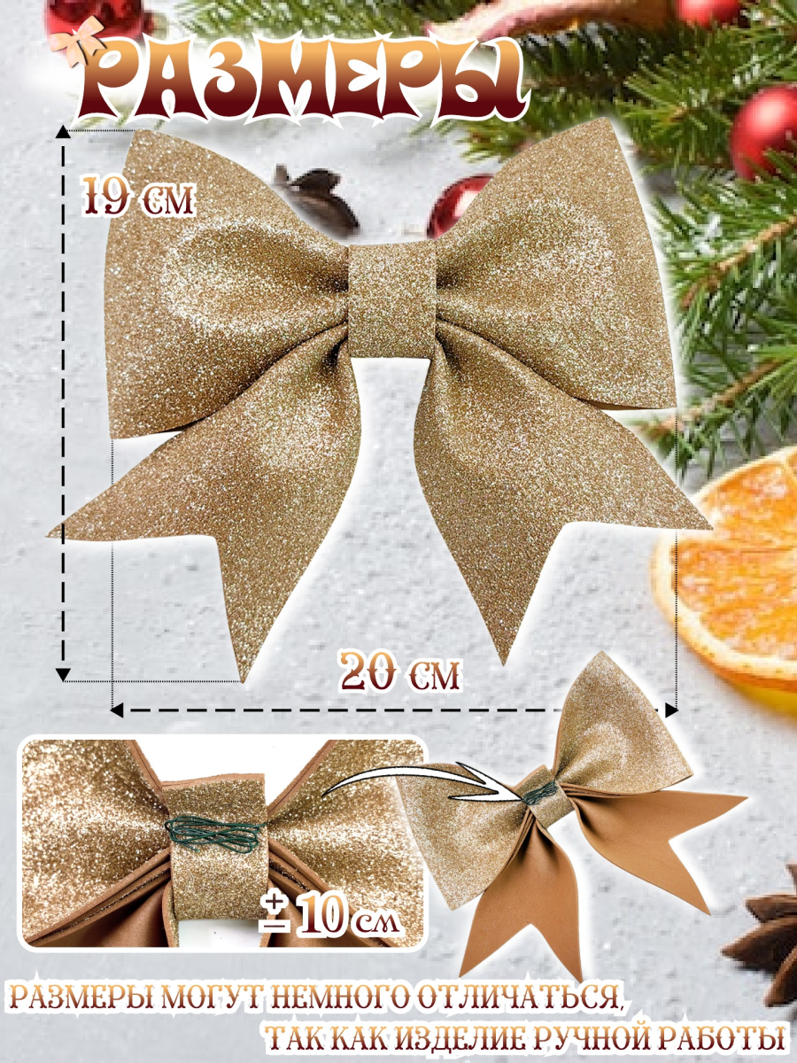 Декоративный бант "Елочные сказки" из фоамирана станет прекрасным дополнением к вашему декору, на праздник, торжество или просто для души. Этот рельефный бант с острыми очертаниями из плотного и блестящего фоамирана придаст праздничное настроение любому интерьеру. Его дорогой розово-золотой цвет и праздничный дизайн в виде банта, идеально впишутся в общую тематику праздника. Бант можно использовать как украшение для елки, интерьера и просто для создания акцентных элементов, создавая атмосферу уюта и волшебства. Также, подойдет для украшения подарочных коробок. Фоамиран — это мягкий, легкий, пластичный полимерный материал, его ключевыми характеристиками являются гибкость, плотность и разнообразие цветов. Данный материал не теряет цвет и не деформируется со временем, поэтому ваш бант долго будет радовать вас своей красотой. Бант имеет выпуски из декоративной проволоки для удобного крепления +- 10 см.