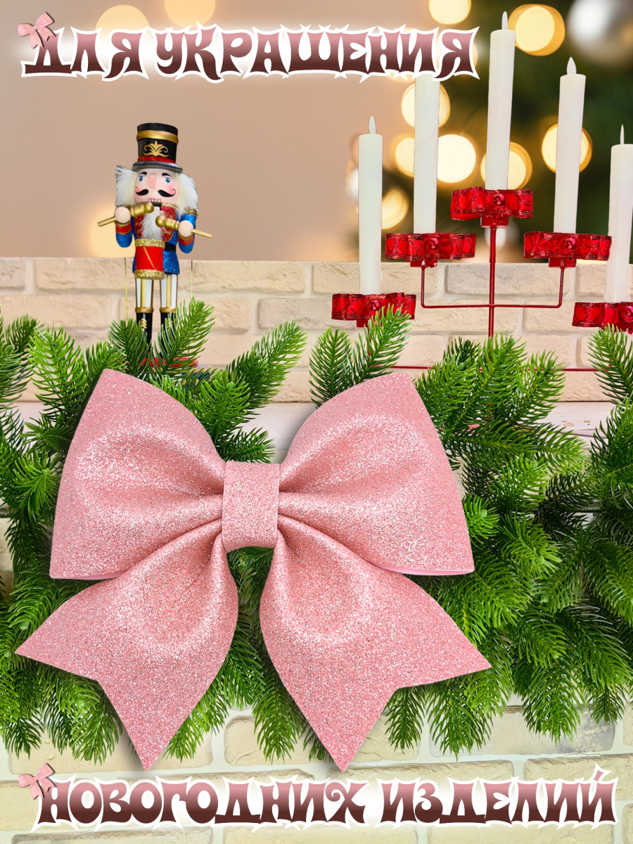 Декоративный бант "Елочные сказки" из фоамирана станет прекрасным дополнением к вашему декору, на праздник, торжество или просто для души. Этот рельефный бант с острыми очертаниями из плотного и блестящего фоамирана придаст праздничное настроение любому интерьеру. Его блестящий, нежно-розовый цвет и праздничный дизайн в виде банта, идеально впишутся в общую тематику праздника. Бант можно использовать как украшение для елки, интерьера и просто для создания акцентных элементов, создавая атмосферу уюта и волшебства. Также, подойдет для украшения подарочных коробок. Фоамиран — это мягкий, легкий, пластичный полимерный материал, его ключевыми характеристиками являются гибкость, плотность и разнообразие цветов. Данный материал не теряет цвет и не деформируется со временем, поэтому ваш бант долго будет радовать вас своей красотой. Бант имеет выпуски из декоративной проволоки для удобного крепления +- 10 см.