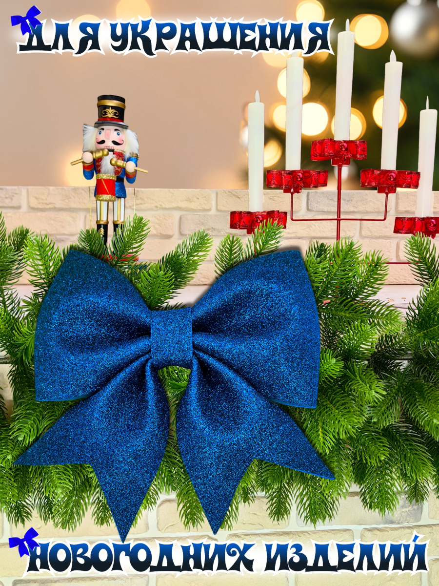 Декоративный бант "Елочные сказки" из фоамирана станет прекрасным дополнением к вашему декору, на праздник, торжество или просто для души. Этот рельефный бант с острыми очертаниями из плотного и блестящего фоамирана придаст праздничное настроение любому интерьеру. Его насыщенный синий цвет и праздничный дизайн в виде банта, идеально впишутся в общую тематику праздника. Бант можно использовать как украшение для елки, интерьера и просто для создания акцентных элементов, создавая атмосферу уюта и волшебства. Также, подойдет для украшения подарочных коробок. Фоамиран — это мягкий, легкий, пластичный полимерный материал, его ключевыми характеристиками являются гибкость, плотность и разнообразие цветов. Данный материал не теряет цвет и не деформируется со временем, поэтому ваш бант долго будет радовать вас своей красотой. Бант имеет выпуски из декоративной проволоки для удобного крепления +- 10 см.