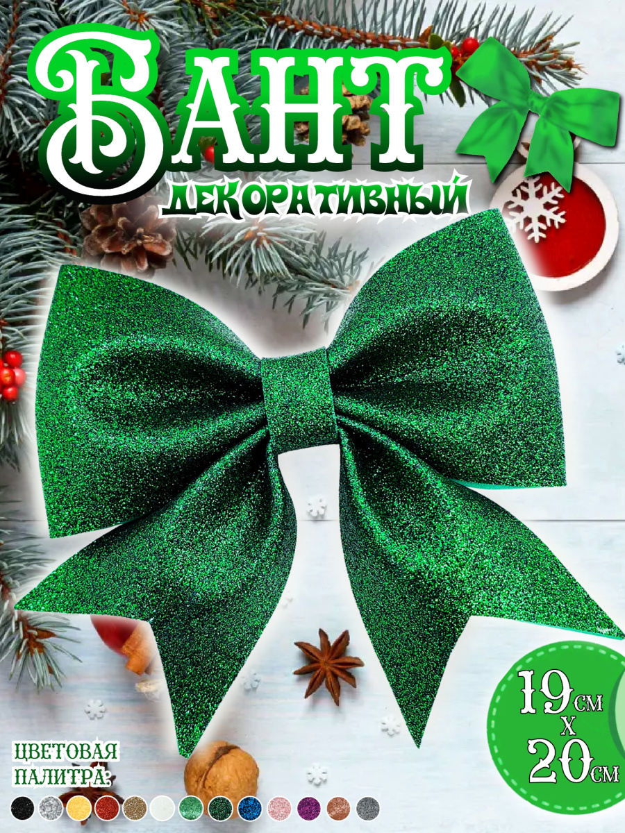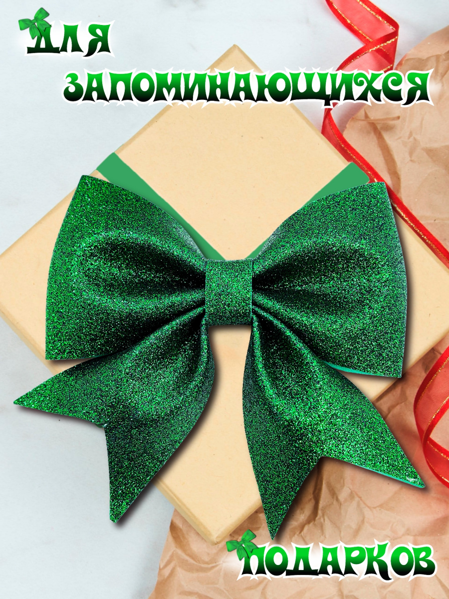 Декоративный бант "Елочные сказки" из фоамирана станет прекрасным дополнением к вашему декору, на праздник, торжество или просто для души. Этот рельефный бант с острыми очертаниями из плотного и блестящего фоамирана придаст праздничное настроение любому интерьеру. Его яркий зеленый цвет и праздничный дизайн в виде банта, идеально впишутся в общую тематику праздника. Бант можно использовать как украшение для елки, интерьера и просто для создания акцентных элементов, создавая атмосферу уюта и волшебства. Также, подойдет для украшения подарочных коробок. Фоамиран — это мягкий, легкий, пластичный полимерный материал, его ключевыми характеристиками являются гибкость, плотность и разнообразие цветов. Данный материал не теряет цвет и не деформируется со временем, поэтому ваш бант долго будет радовать вас своей красотой. Бант имеет выпуски из декоративной проволоки для удобного крепления +- 10 см.